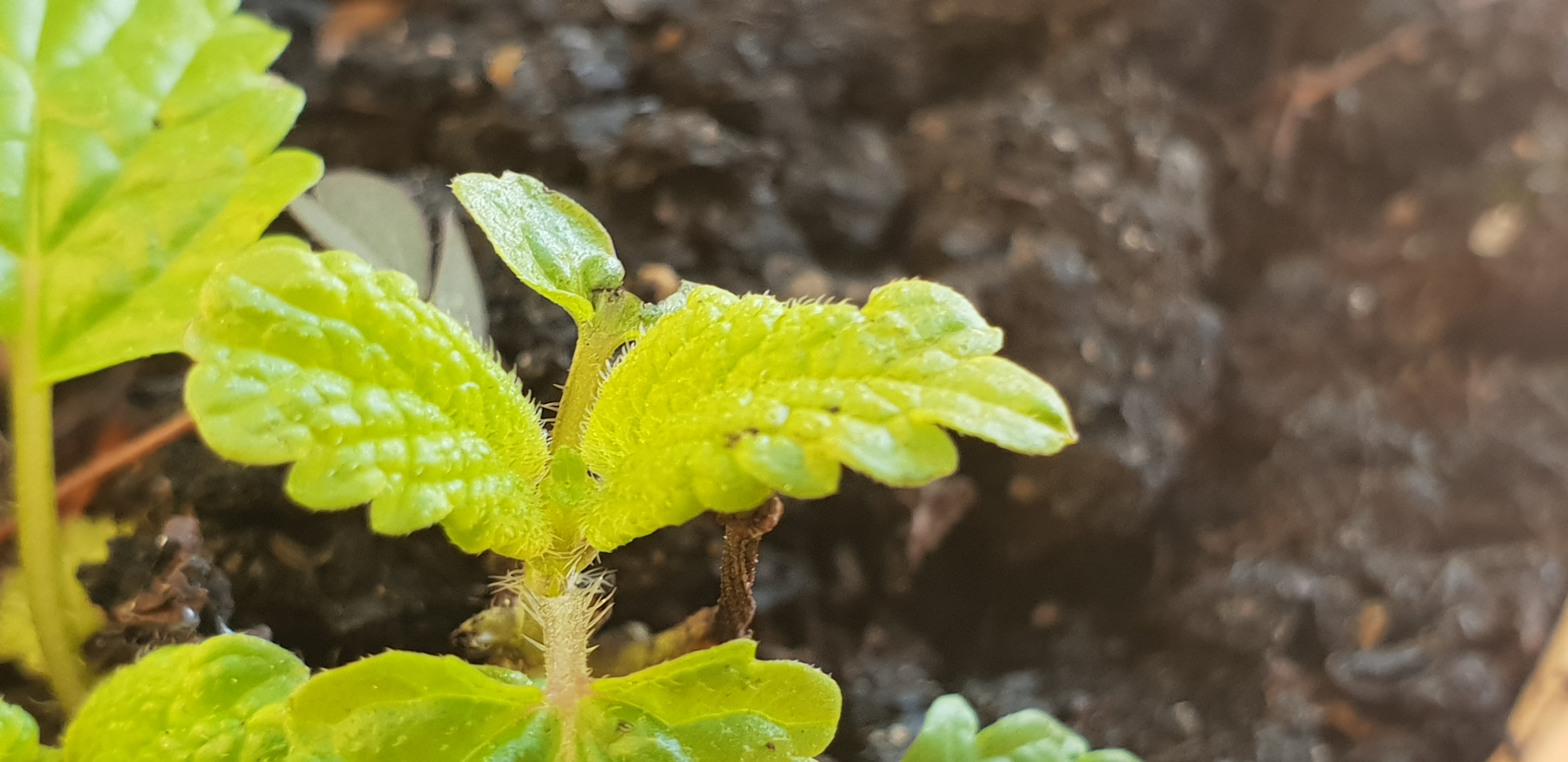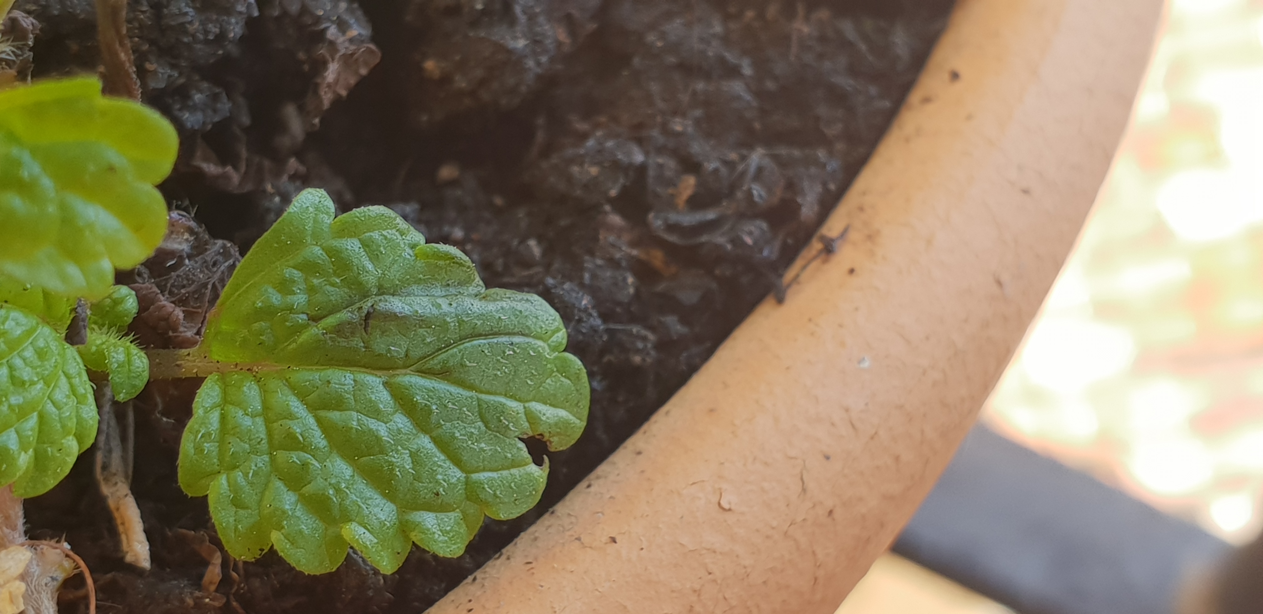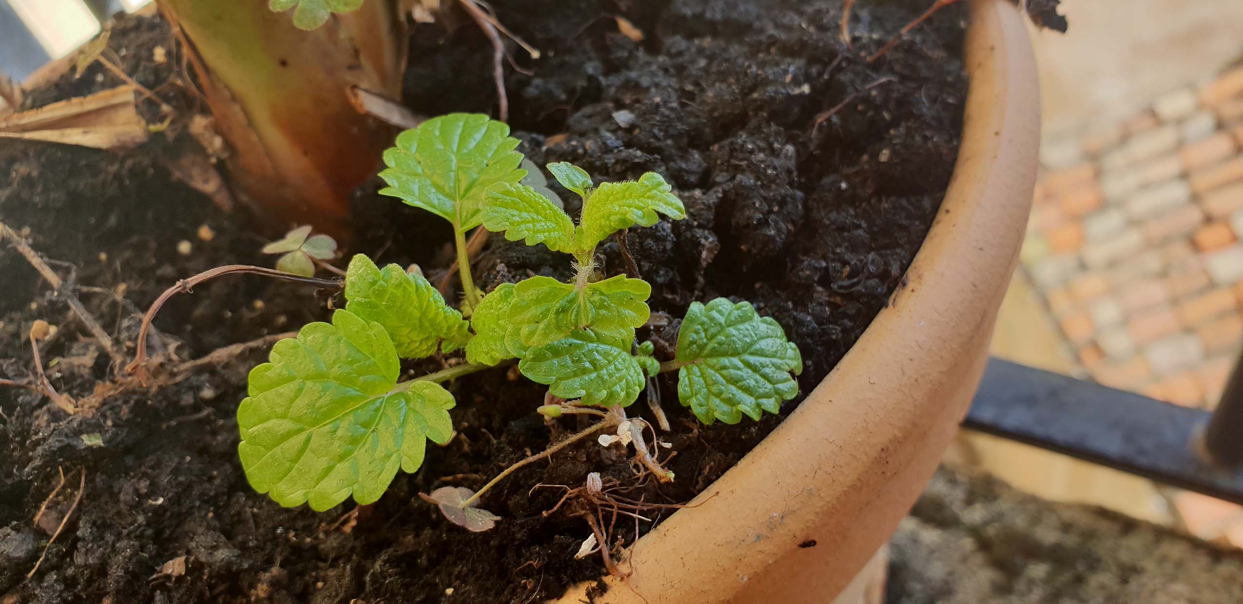 entre autre il y à de la mélisse. Ces feuilles ont des petits poils et elle sent fort la citronnelle quand on la frotte entre ses doigts .
