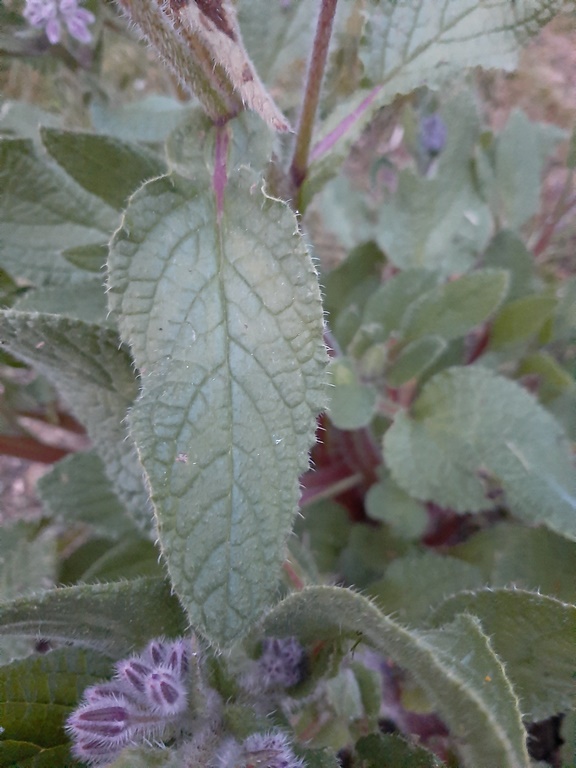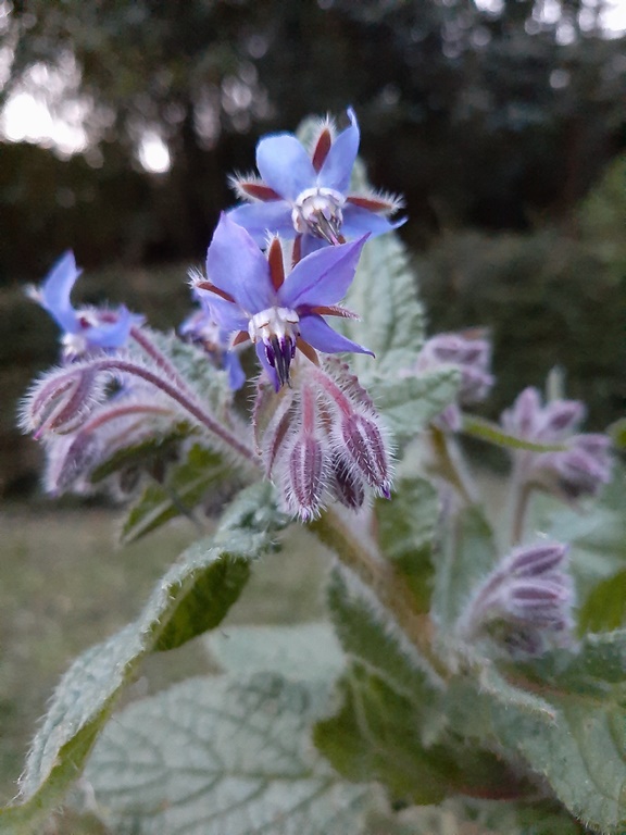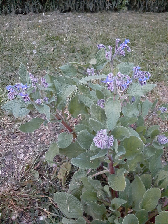 Il s'agit d'une bourrache qui donne de petites fleurs bleues violacées une fois écloses.