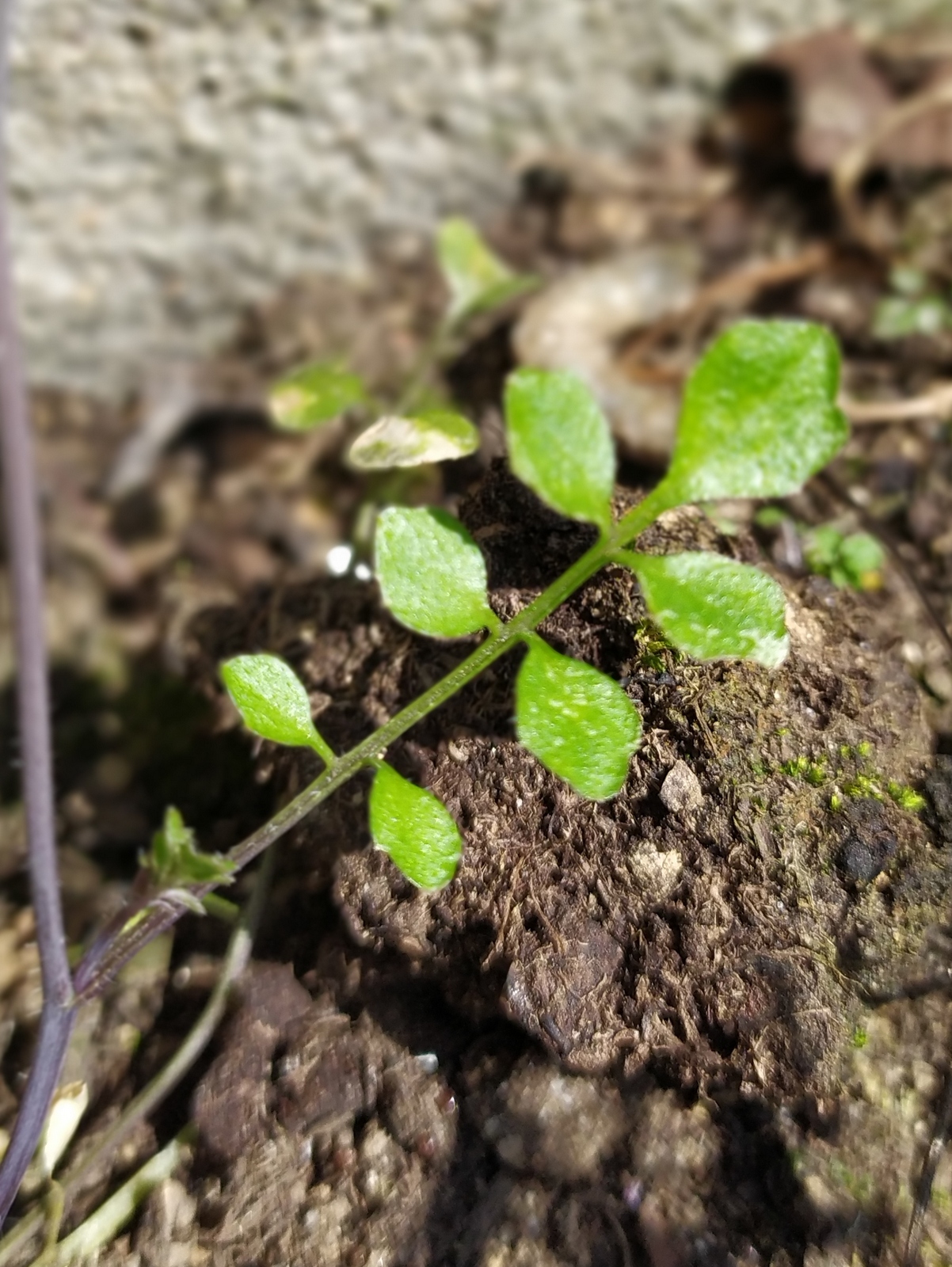 Photos d'une petite plante venue s'installer dans l'une des jardinières du balcon !