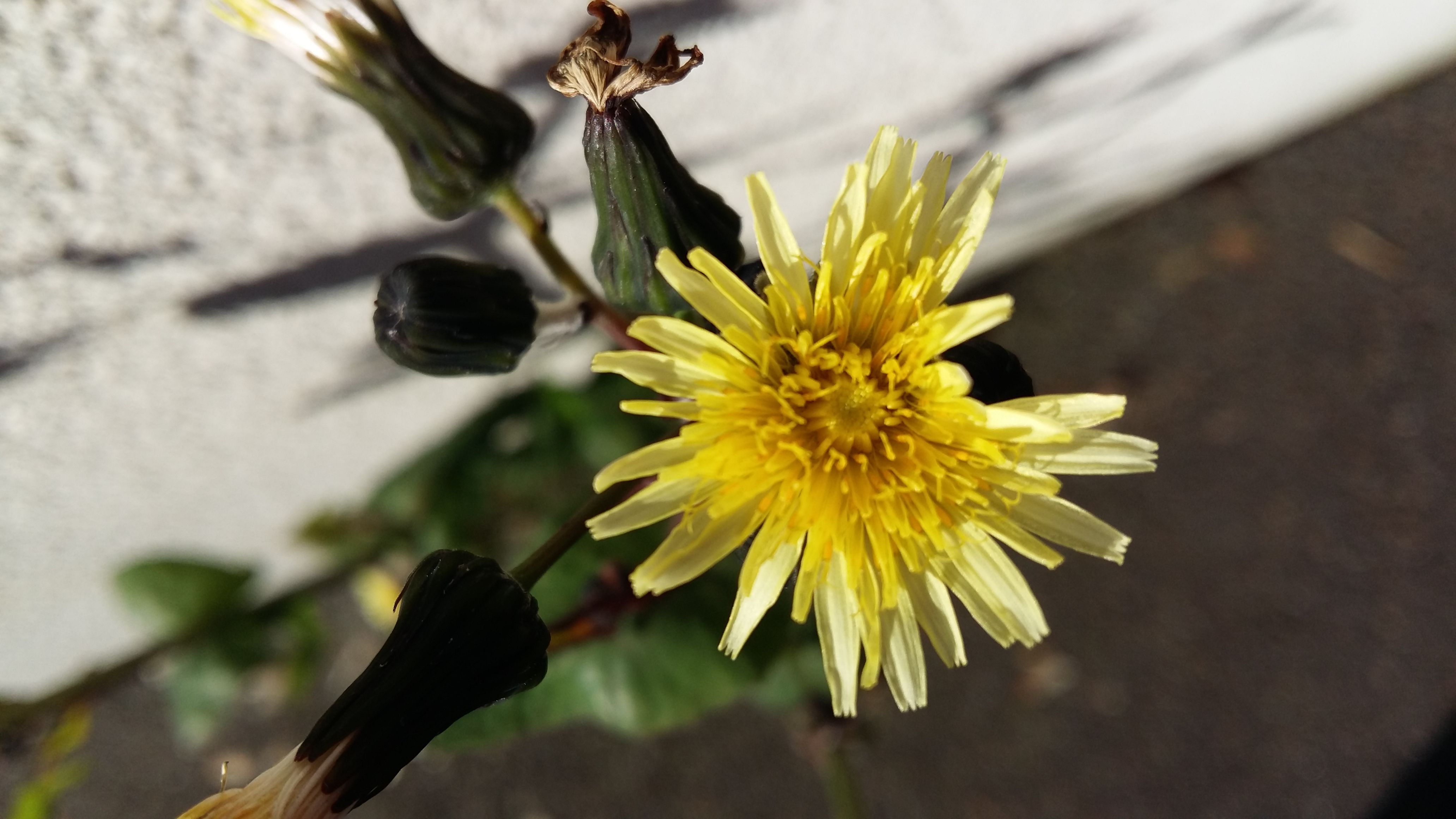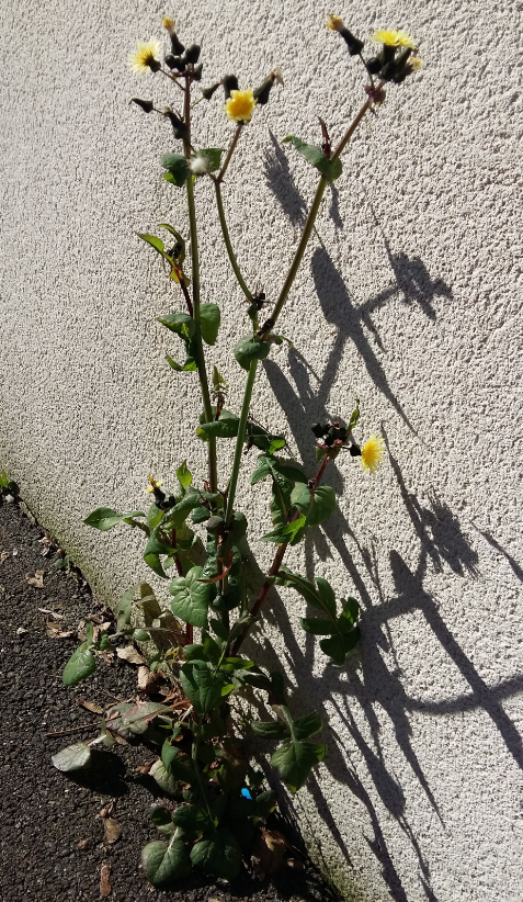Photos d'un laiteron maraîcher (Sonchus oleraceus (L.) L.) que j'avais pu photographier dans ma rue (à Tours) il y a quelques mois, bien avant le confinement.