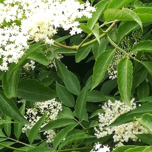 Le nom de cette plante est Sambucus nigra, en voici une vue globale :