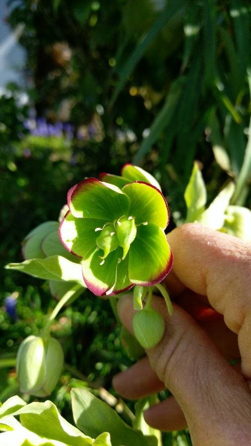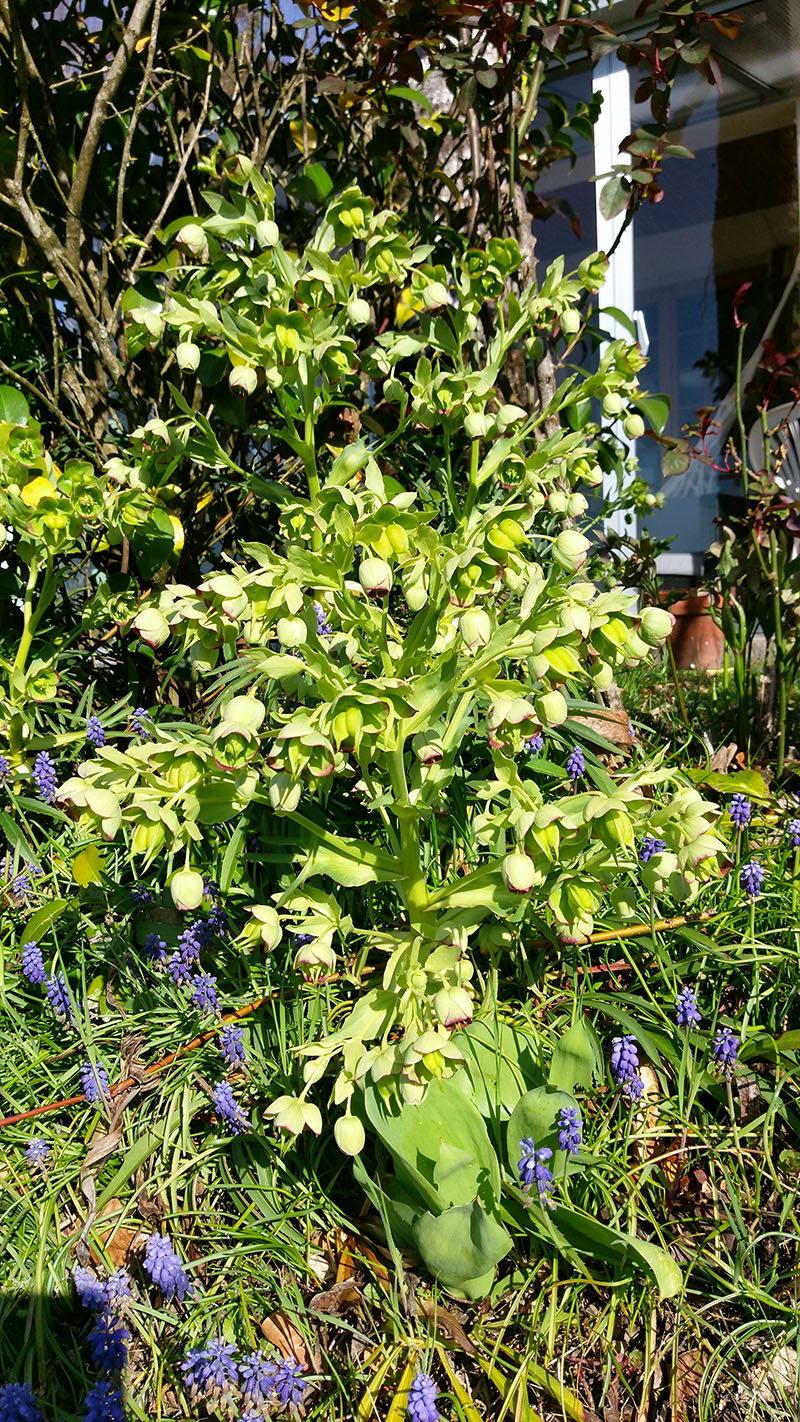 Une héllébore qui pousse sur mon talus, orientée plein sud, mais à l'ombre d'un tilleul et d'un camélia; je trouve