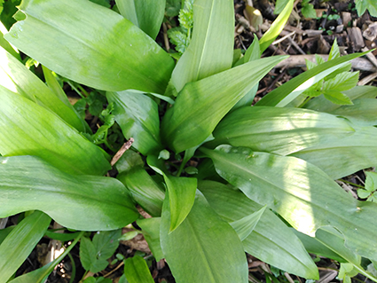 feuilles et des boutons floraux partent du sol. Forte odeur d'ail.