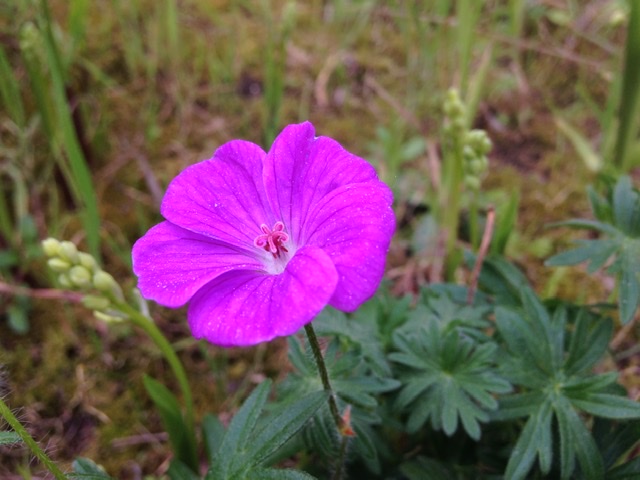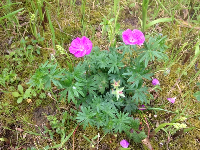 Trouvée dans le jardin où je viens d'emménager : j'ai photographié une petite plante dont j'ignore le nom, feuilles très douces au toucher et tiges poilues, réunies à la base. Petites fleurs mauves à 5 pétales doubles (semblent à 10 pétales).