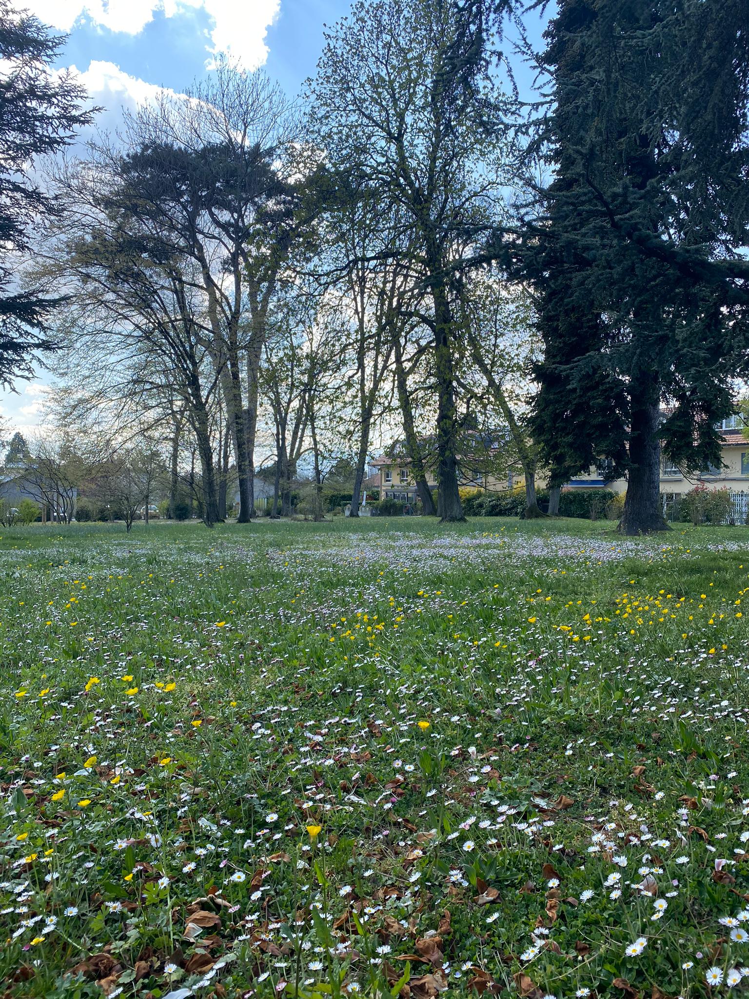 On peut apercevoir du plantin, des boutons d'or, des pissenlits, et pâquerettes (et sûrement bien d'autres!)