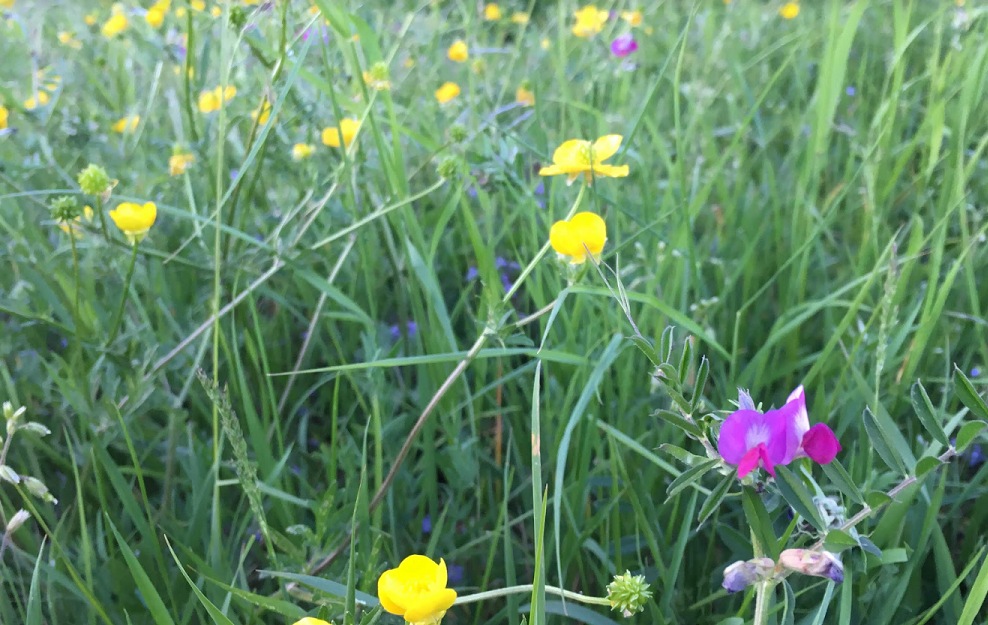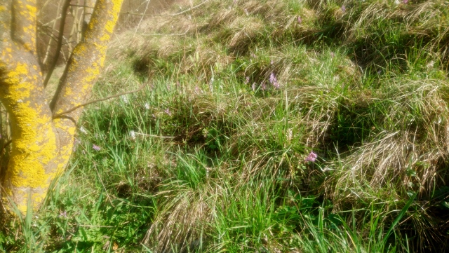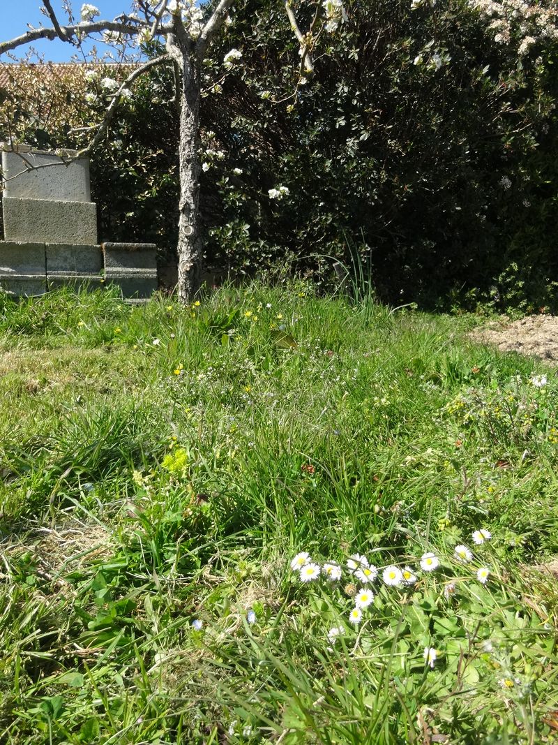 Toujours avec l'espace de vie disponible et pour cette activité, voici la photo d'une zone sauvage de mon verger où l'on voit apparaître 5 ou 6 plantes sauvage des prés.