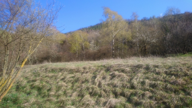 J'ai pris ces photos à Grône, à 500m d'altitude. On distingue dans la pré de petites fleurs printanières dont je ne connais pas le nom. Plus haut, il y a un étage de feuillus : bouleaux, hêtres, merisiers...