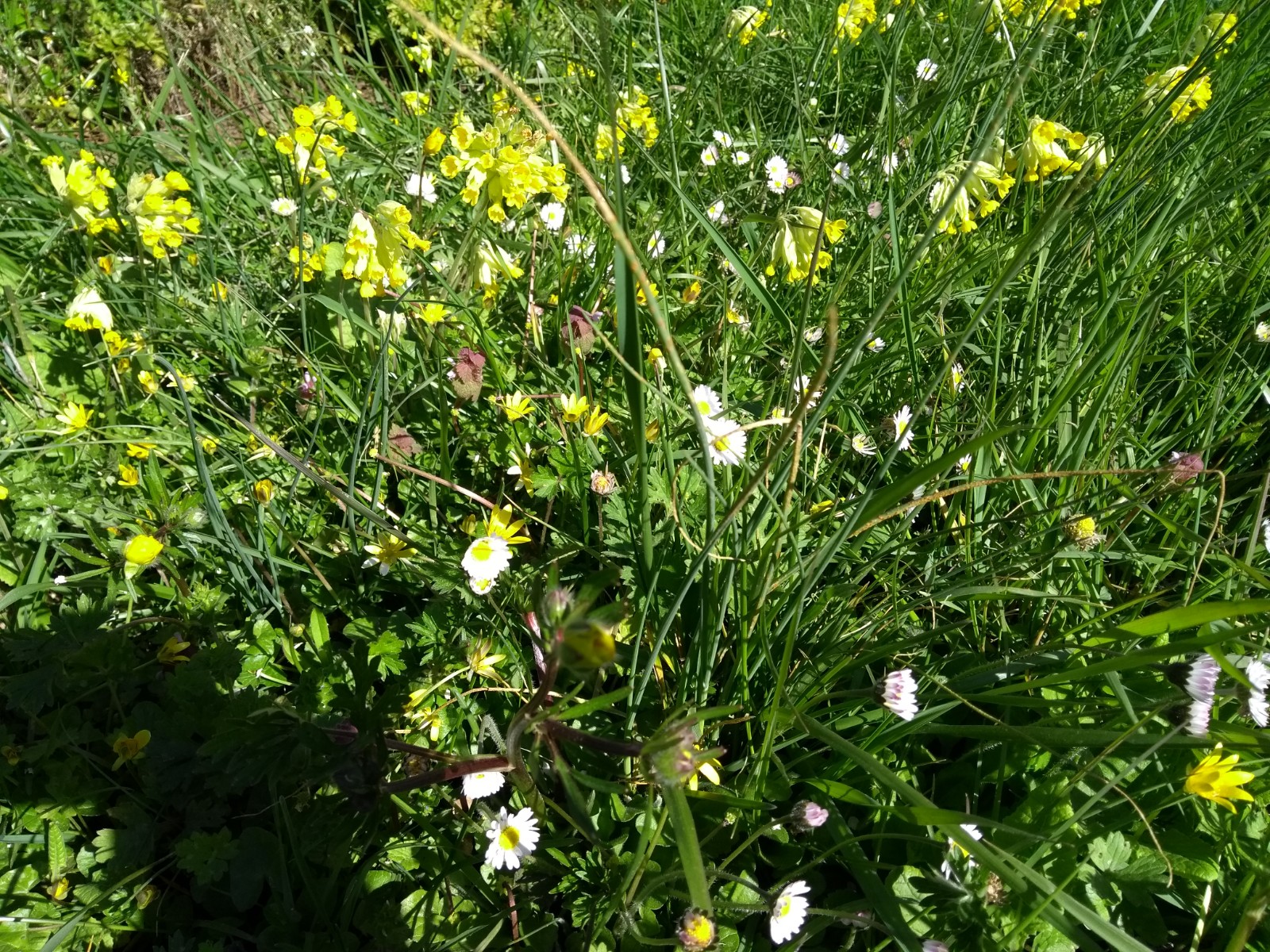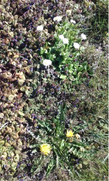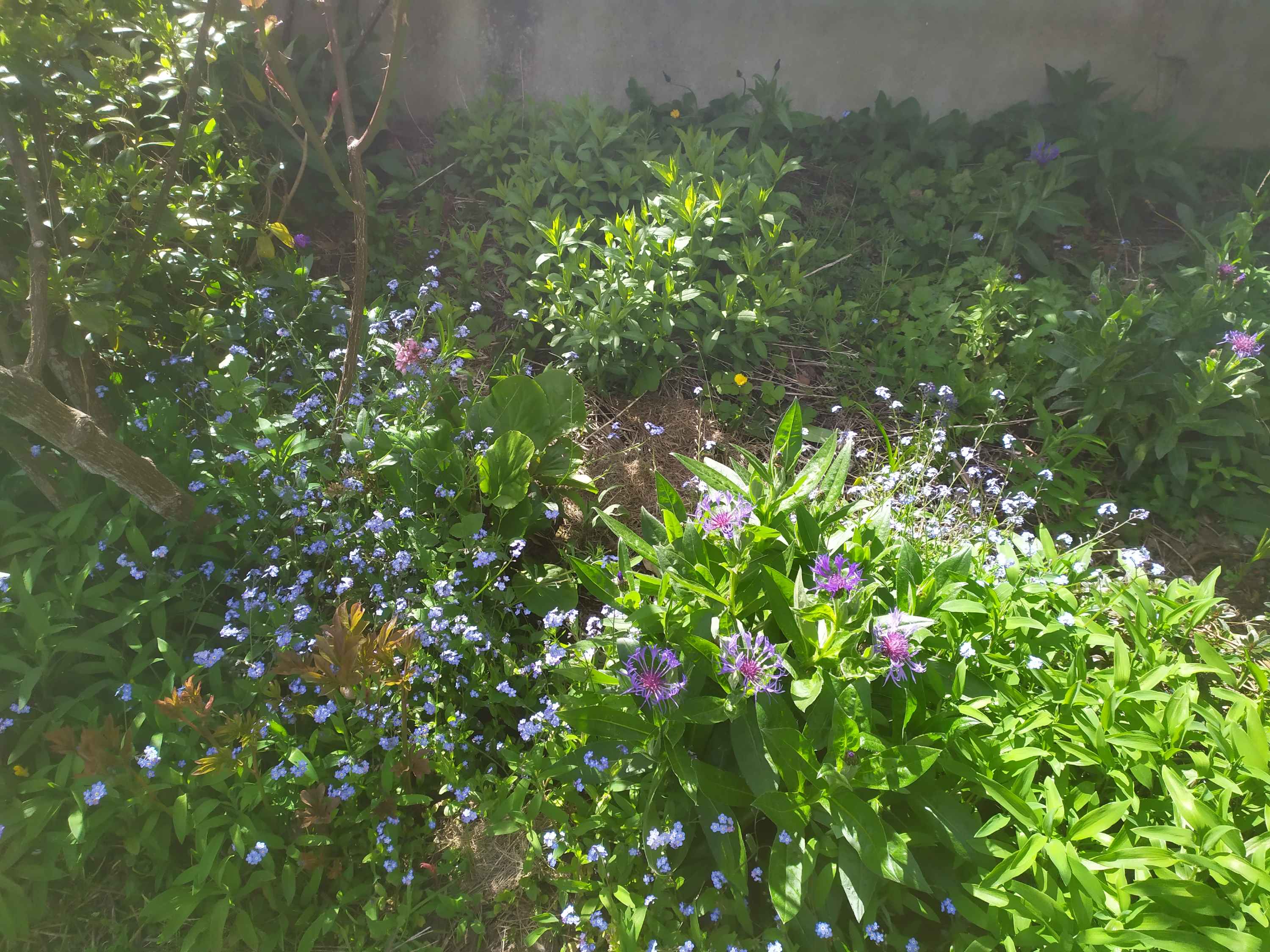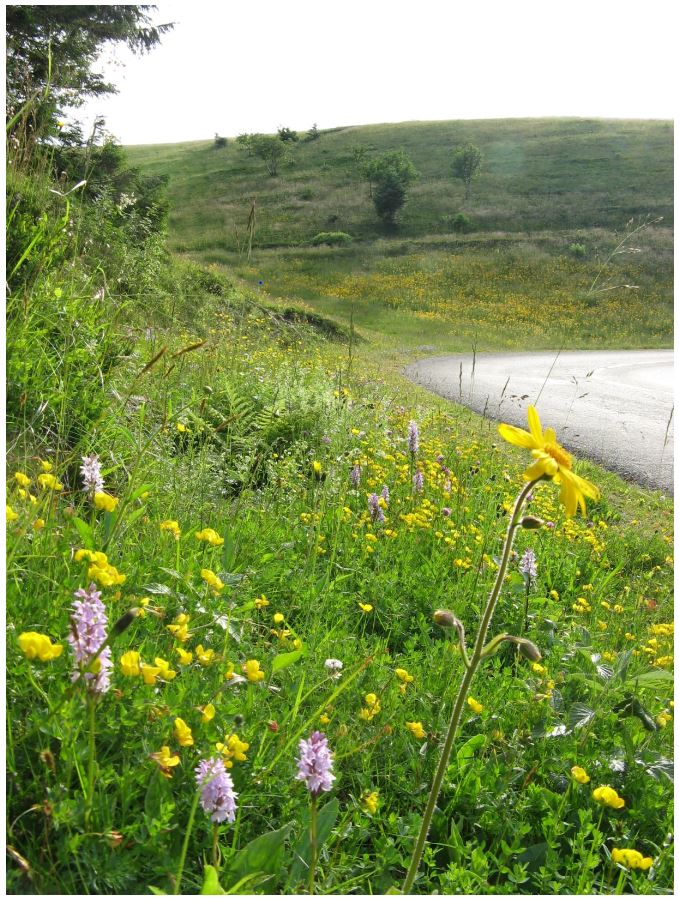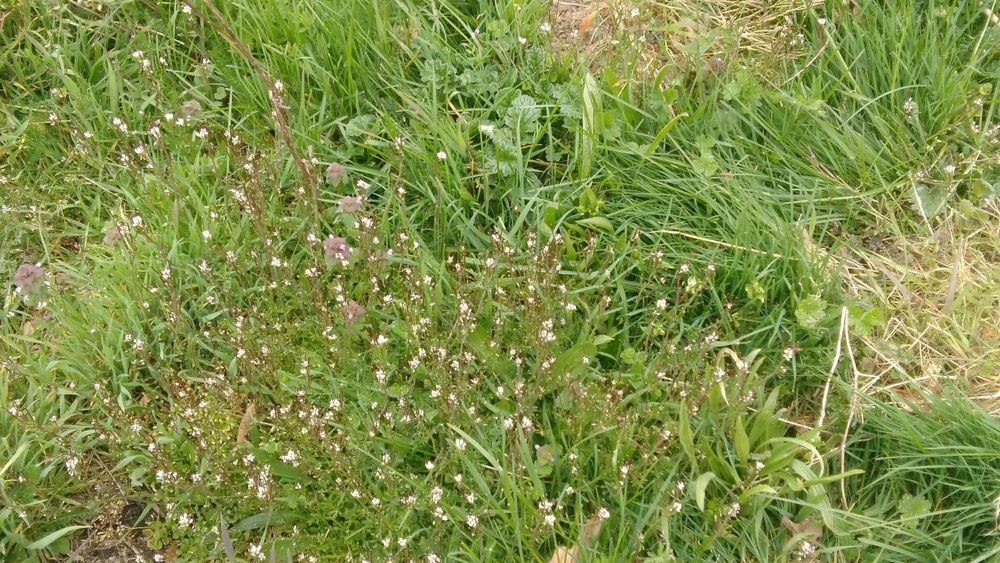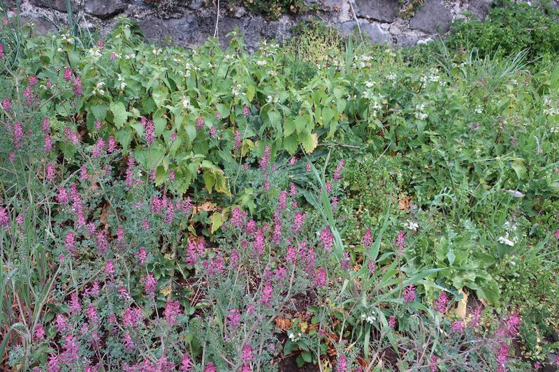 Je ne m'y connais pas encore trop en plantes, mais photo prise dans un talus en Haute Loire à Chilhac aujourd'hui !! Au moins 4 espèces dont du lamier blanc je crois derrière les fleurs roses !