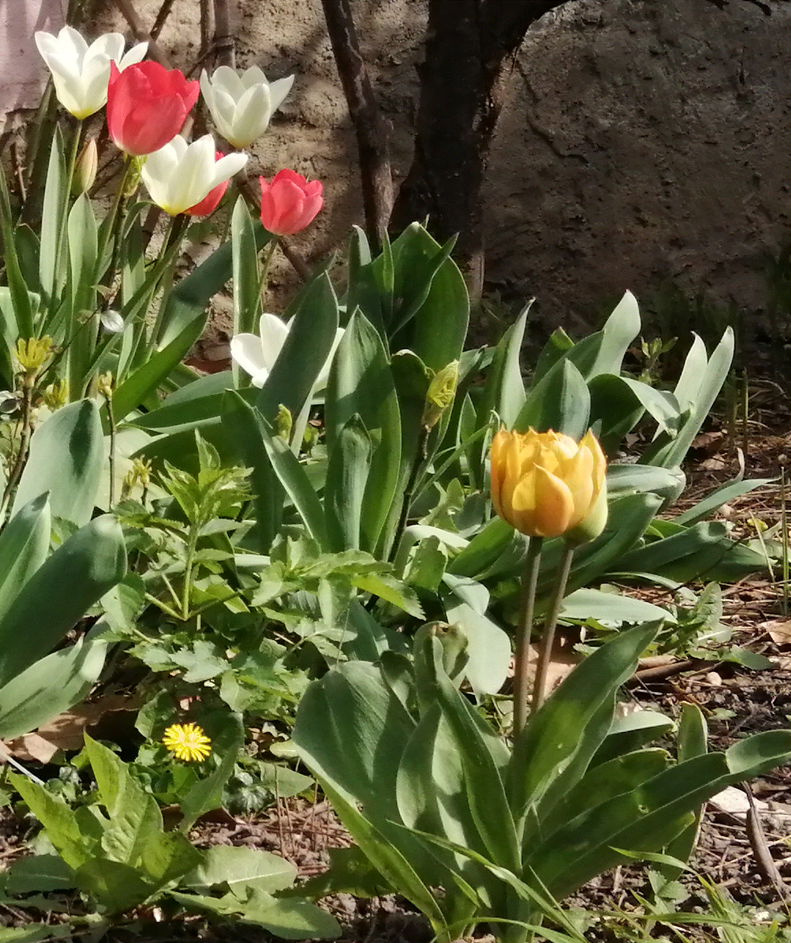 La première biodiversité que j'ai captée est ce mélange de couleurs issue de tulipes importées de Hollande (plantes cultivées).