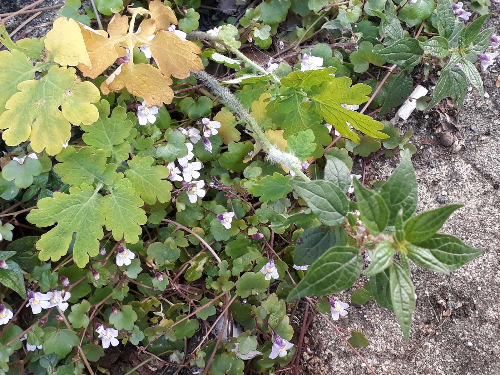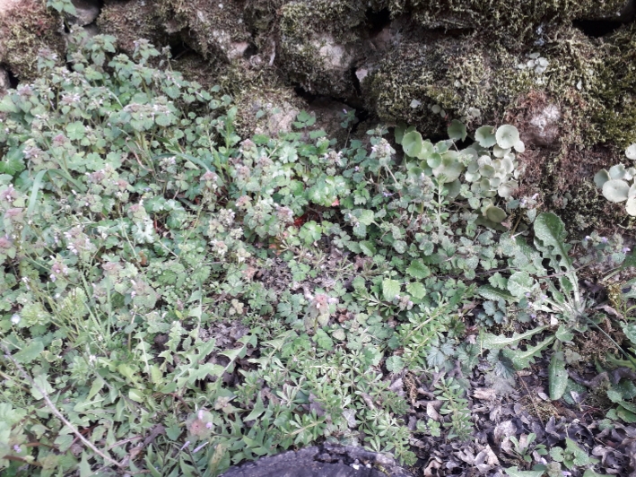 J'ai reconnu le gaillet gratteron, le miosotis, le pissenlit, le lamier pourpre. Et de la mousse sur le mur en pierre ;)