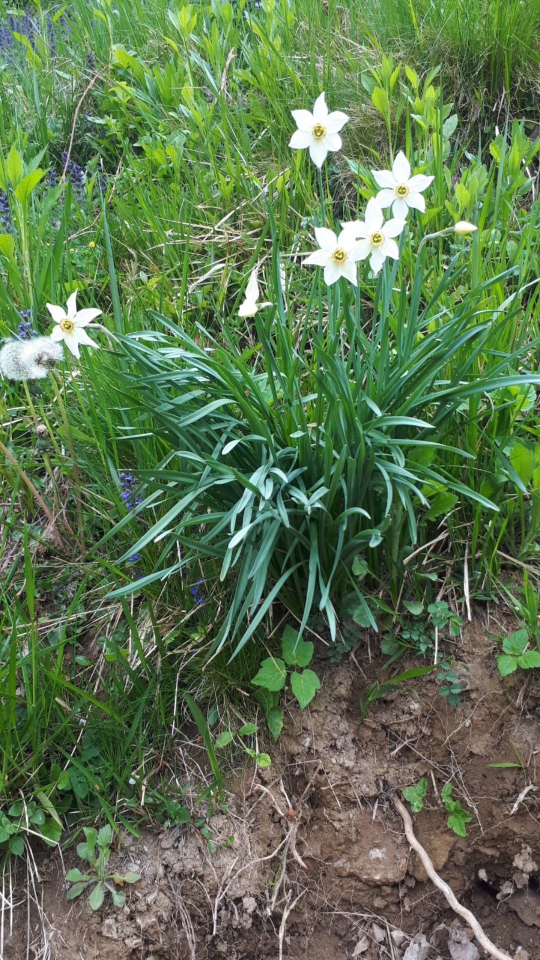 En se baissant, on observe : carottes sauvages, gaillet grateron, Géranium Herbe à Robert, de la piloselle, de la renoncule rampante, du plantain lancéolé, des pissenlits, de la véronique, du trèfle blanc, des primevères officinales, de l'origan, de la potentille ansérine, de la buglosse, et quelques autres que je n'identifie pas telles des herbes à feuilles longues genre carex