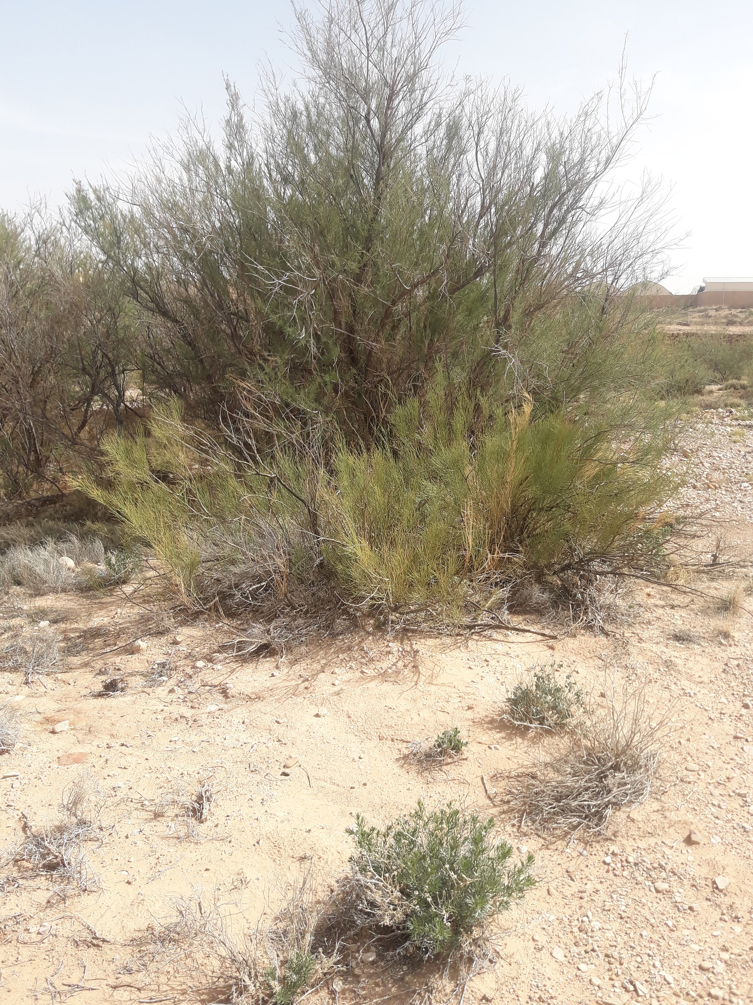 En premier plan, Peganum harmala de la famille des Zygophylacées, plante bien non consommé par le bétail, très odorante une fois écrasé.