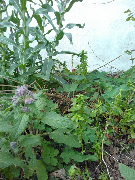 Voici le hot spot de biodiversité que j'ai trouvé dans un coin oublié de mon jardin. Pas moins de 16 espèces identifiées dans cet espace de 12m² avec entre autres orties, géranium herbe à Robert, gaillet gratteron, myosotis, lierre, grande consoude, lamier pourpre, grande chélidoine, jonquilles, cyclamen, renoncules...