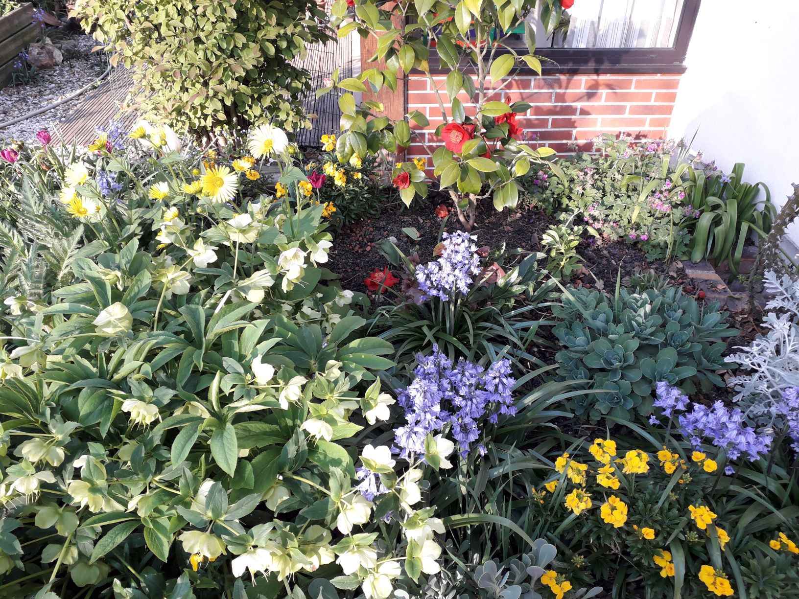 Hellébores, Sedum, Tulipes, Jacinthes semi-sauvages, giroflées, Camélia, Cinéraire, Géranium ....