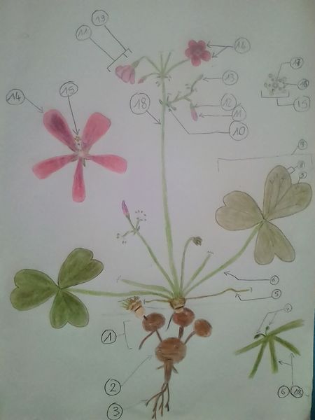 Voici un schéma de géranium "Herbe à Robert" qui pousse spontanément dans les pots en jachère chez moi.