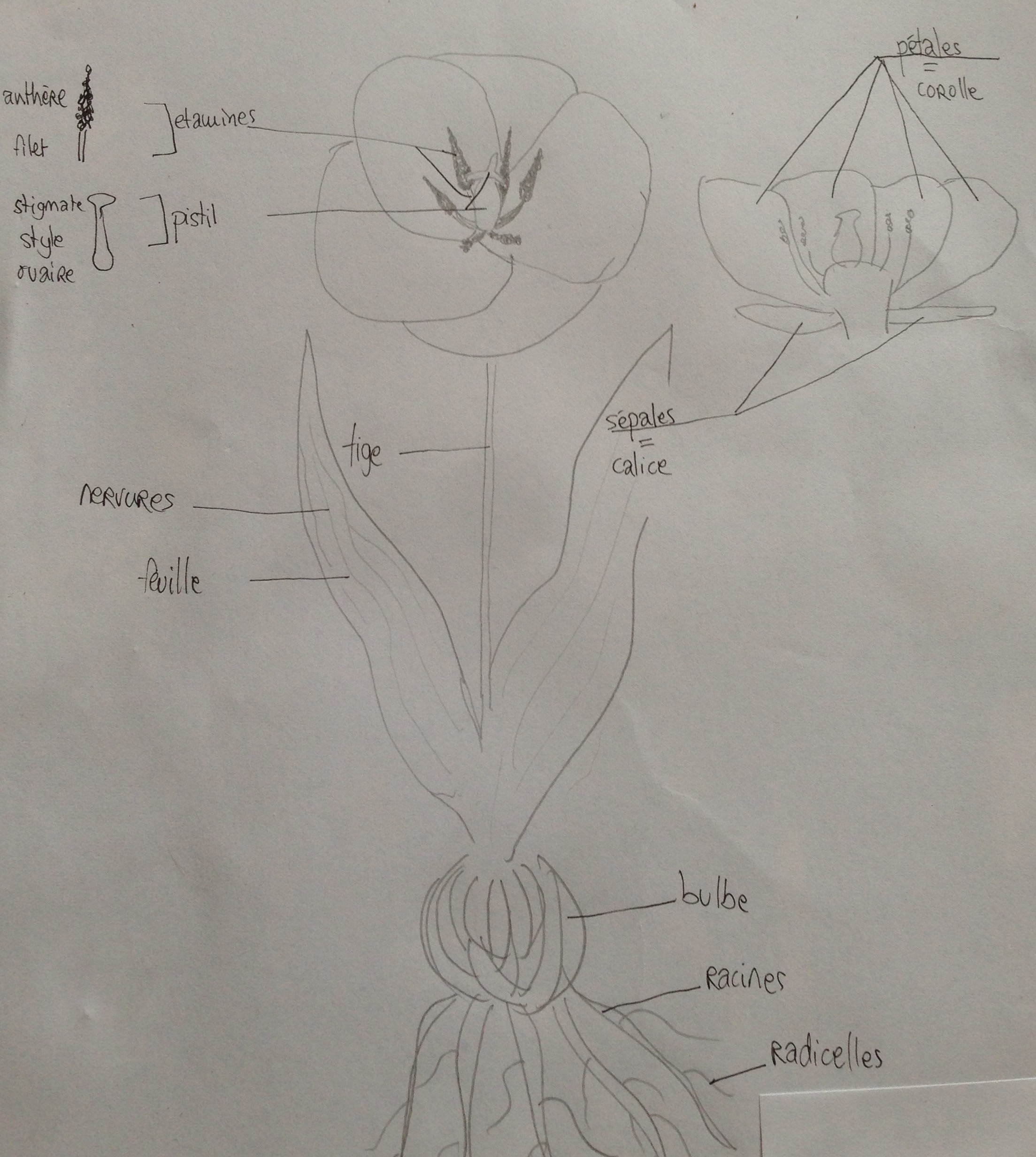 Un dessin de la fleur d'après une photo de Régis prise en France à Caujac