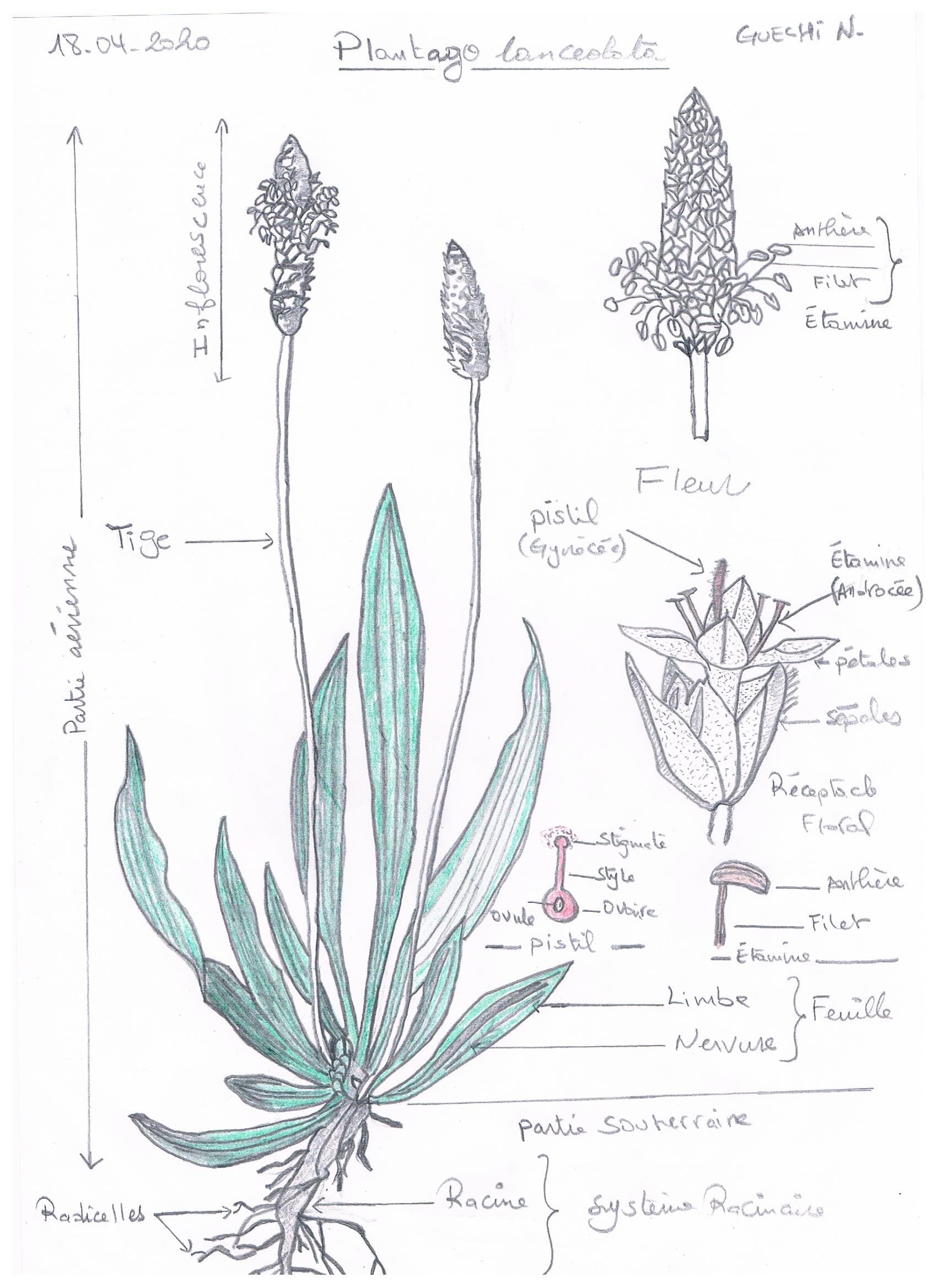 J'ai dessiné une plante de plantain (Plantago lanceolata) que j'ai photographié pendant une sortie botanique à Alger le 25/04/2019