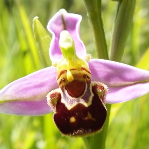 J'ai choisi de vous présenter l'Ophrys abeille (Ophrys apifera), qui est une orchidée européenne. Elle s'est spécialisée de manière très originale afin de favoriser sa pollinisation par les insectes (interaction de commensalisme).