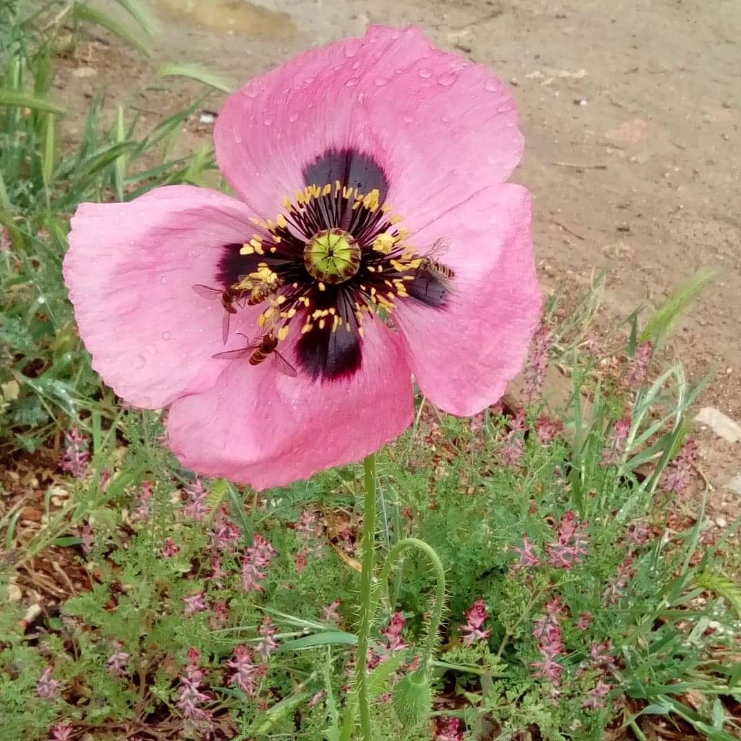 Aujourd'hui, j'ai trouvé un joli coquelicot aux pétales roses Papaver somniferum et je me suis renseignée sur cette espèce.