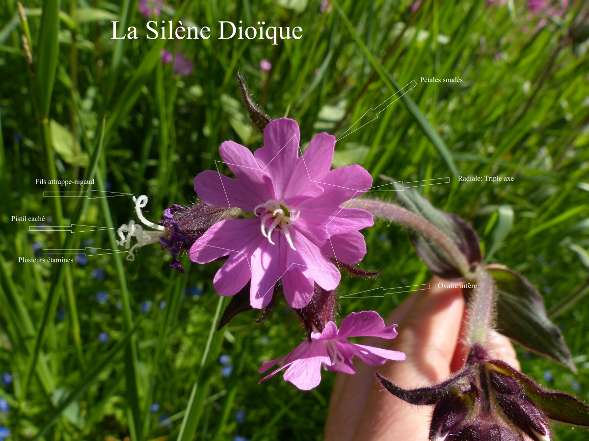 Pour apporter les différentes annotations, j'ai observé la plante dans son intégralité et j'ai également disséqué un ovaire fécondé (trop petit pour en faire une photo convenable). Il me reste un doute sur l'ovaire, que je pense être infère non adhérent car le réceptacle est en creux et l'ovaire s'insère à l'intérieur tout en laissant un espace entre les deux... et en même temps, la partie fécondée reste largement au dessus de la zone d'insertion des pétales et sépales.