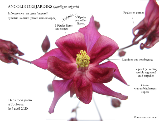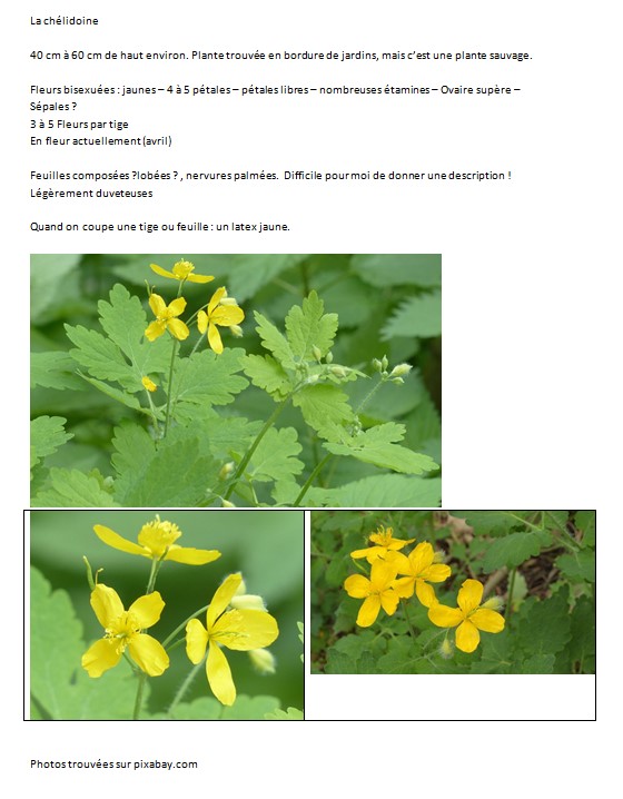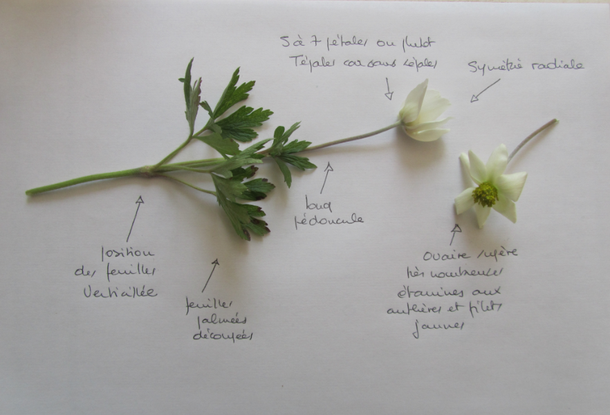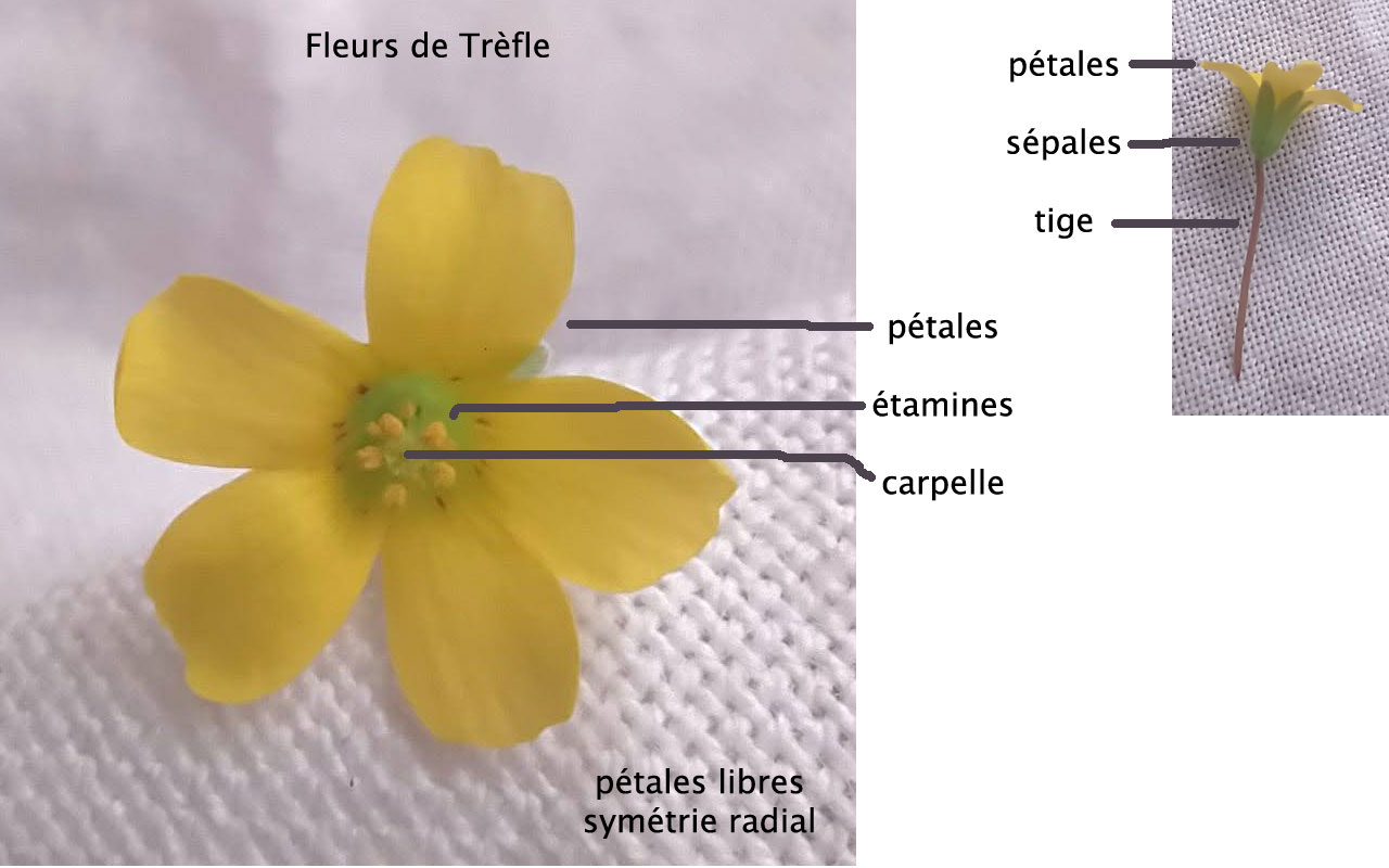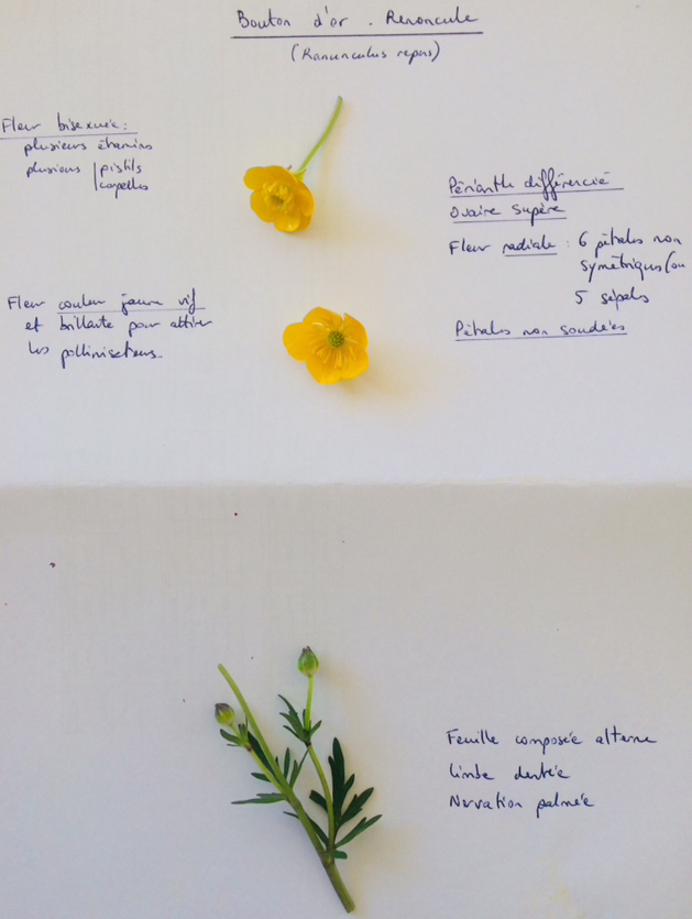 Voici mon exemple de fleur avec les notations. C'est une ficaire de mon jardin.
