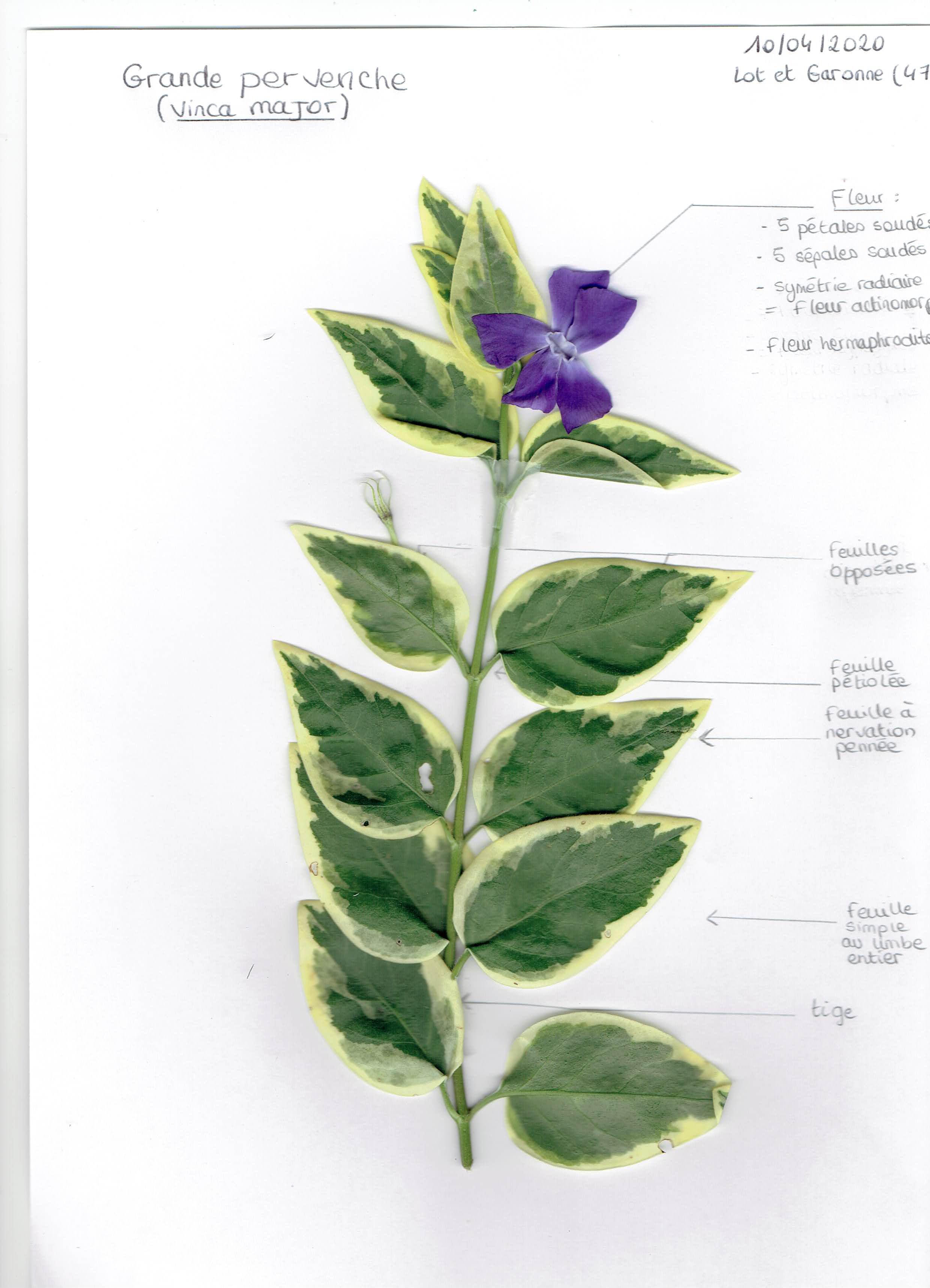 Toujours cueillie dans mon jardin Nantais, voici Vinca major L., la grande pervenche (à moins que cela soit une espèce hybride inconnue).