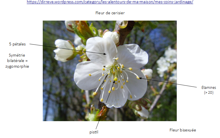 Voici une fleur de cerisier de mon jardin avec quelques annotations.