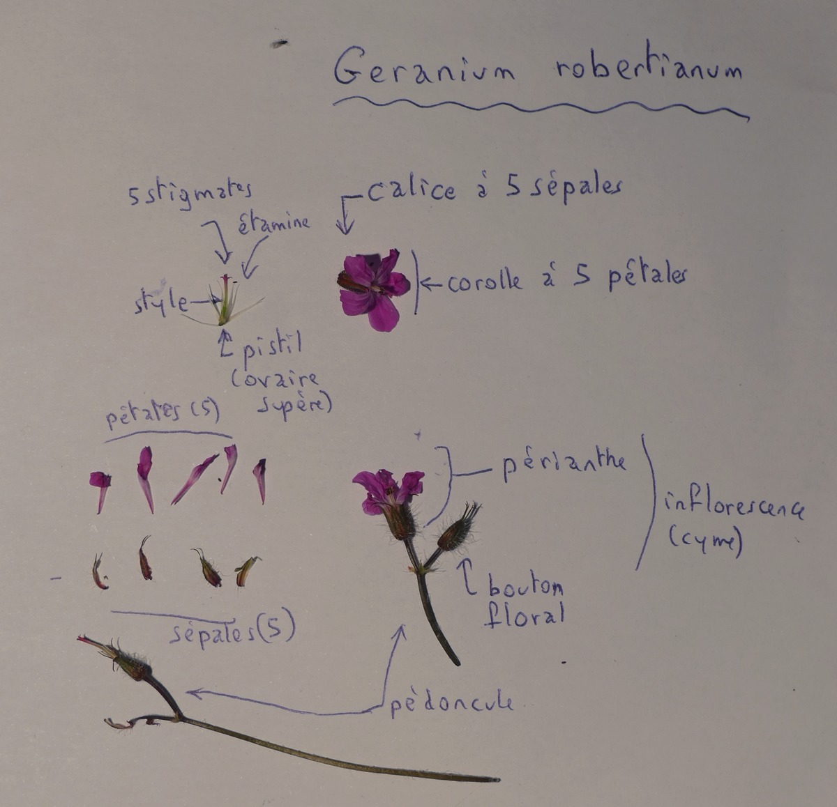 Voici mon schéma, celui d'une fleur de Géranium robertianum, famille des Géraniacées.