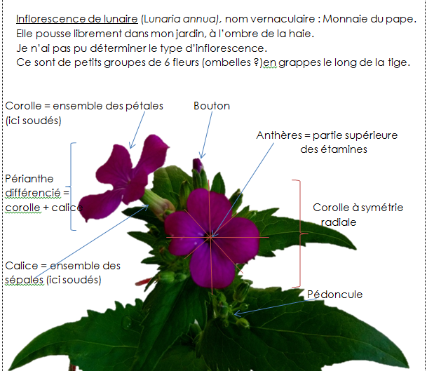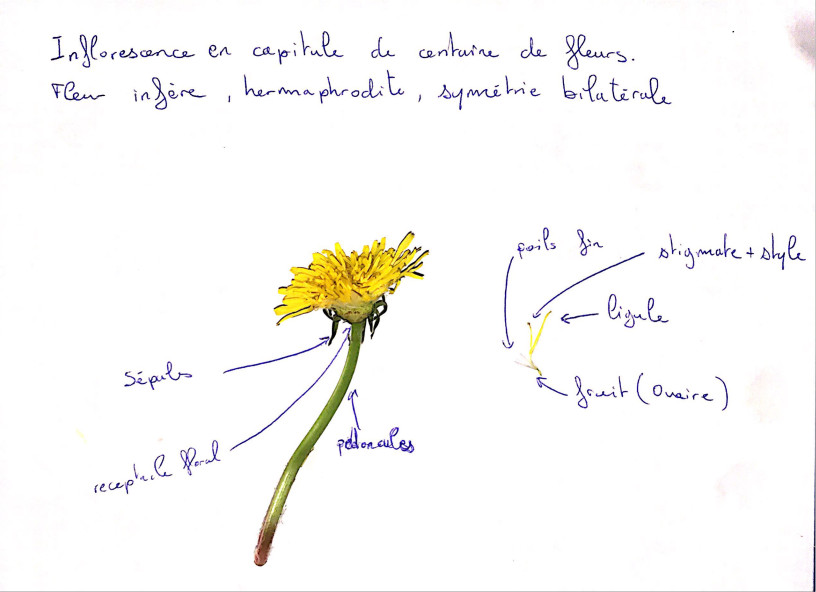 Cet exercice met bien en évidence toute la distanciation qu'il y a entre un schéma trouvé dans un livre de botanique et la visualisation de la fleur sur le terrain!