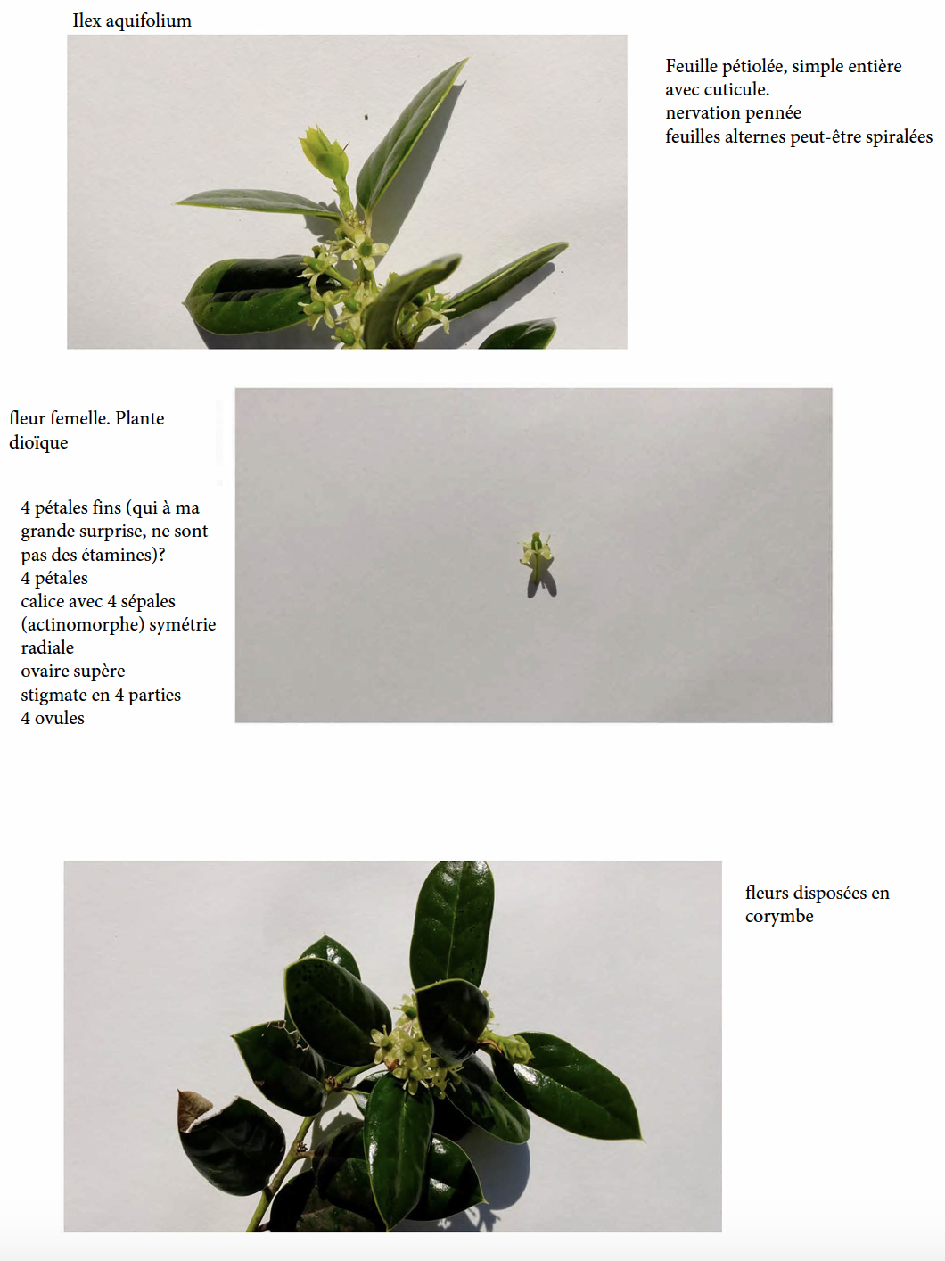 Peu de fleurs dans mon jardin, j'ai donc choisi la fleur de houx. Mal m'en a pris, car je ne savais pas que la plante est dioïque.
