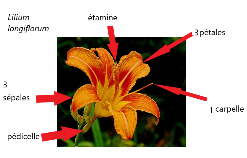 fleur symétrique bisexuée : 6 étamines et 1 pistil