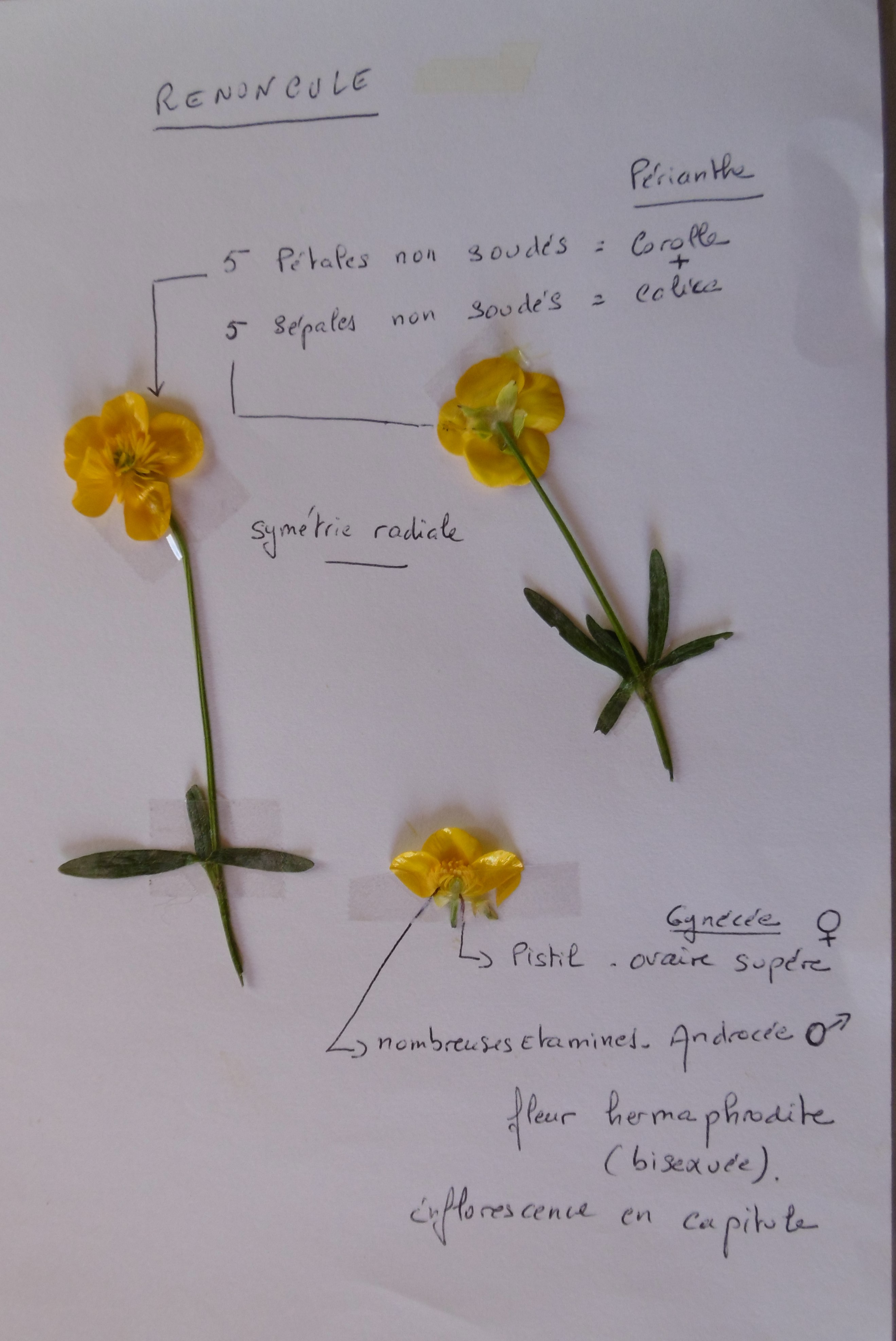 voici mon descriptif d'un renoncule de mon jardin en Vendée :