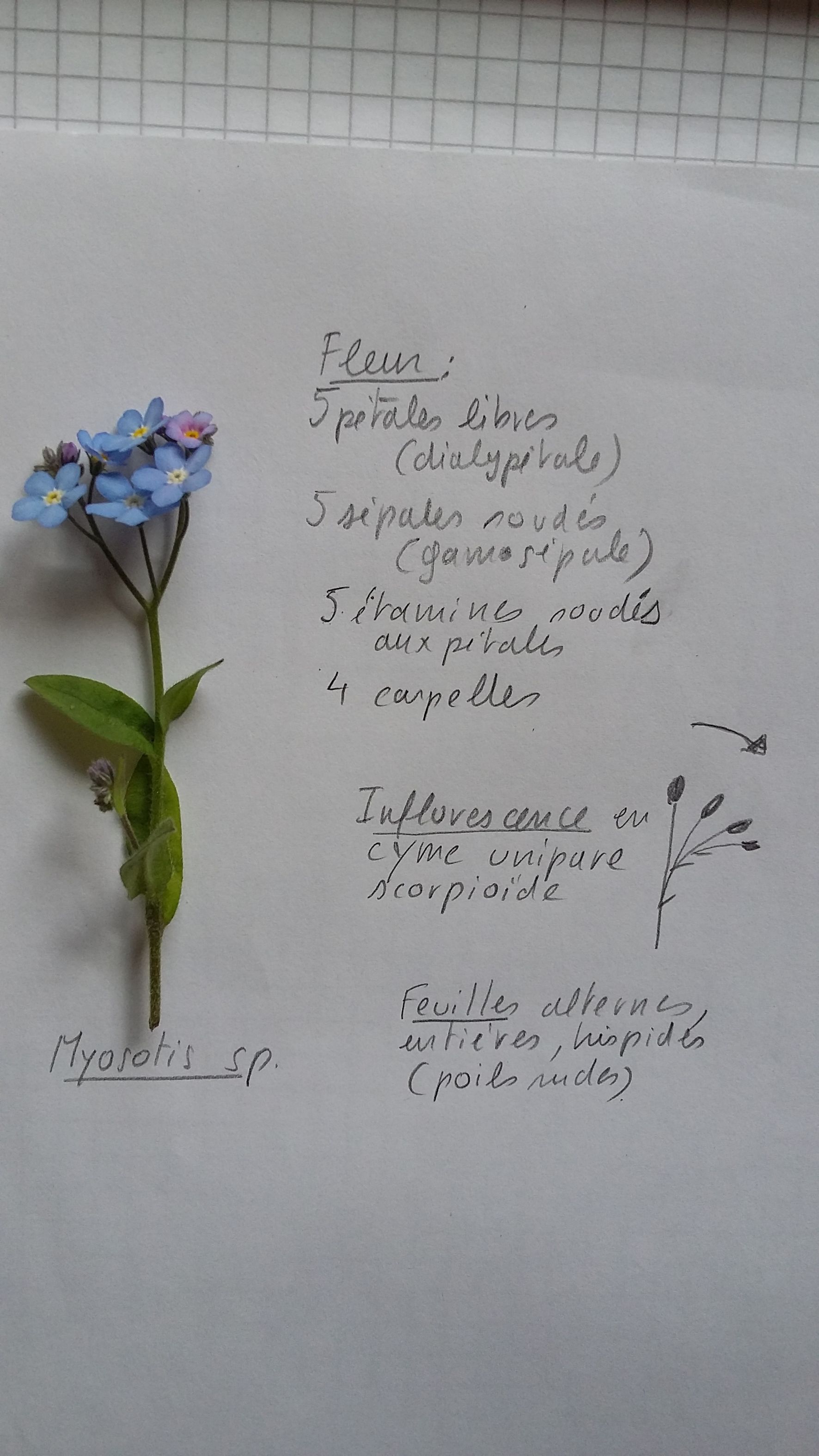 L'inflorescence est définie. C'est une cyme unipare (voir schéma de développement dans le dessin).