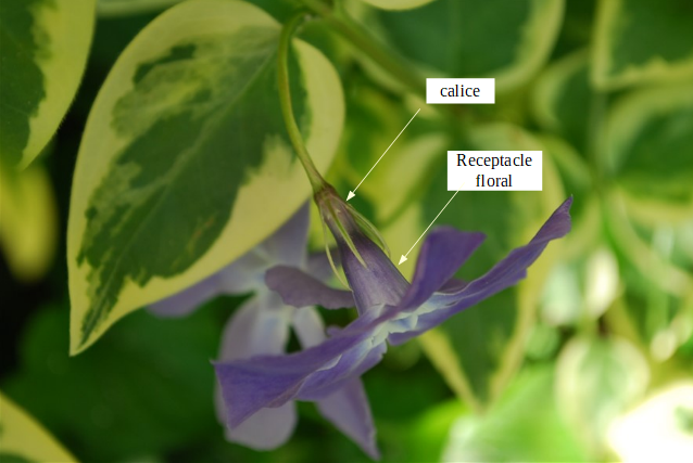 Visibles sur la photo: tige, bractée, bourgeon auxiliaire, calice