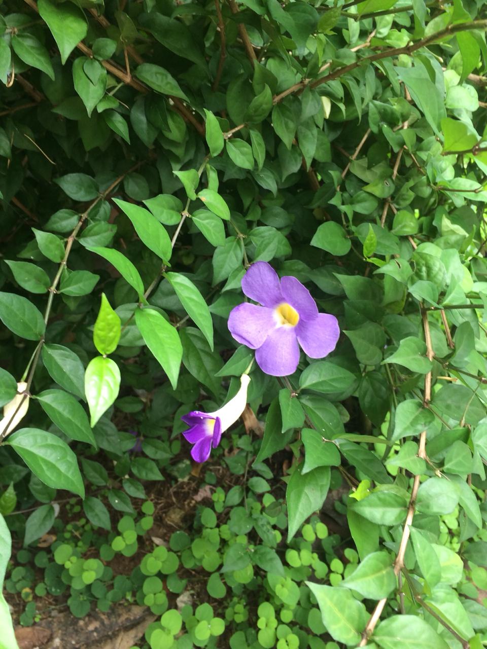Ci-jointes les photos avec annotation de la plante THUMBERGIA ERECTA récoltée dans mon jardin, Stoupan, Guyane Française, 28 04 2020.