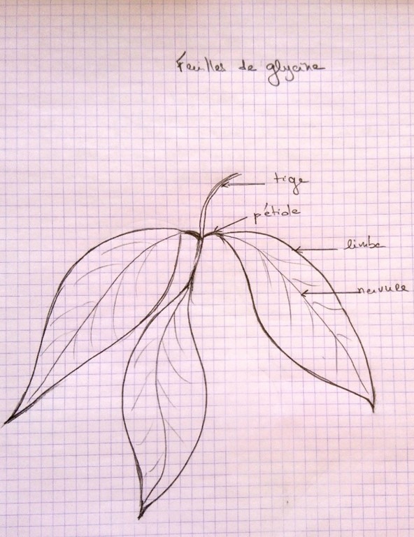 La glycine : son feuillage est cadu, les feuilles sont toujours par nombre impair. Les limbes sont simples, entiers, opposés et la nervation est pennée. Les feuilles mesurent environ 10 à 15 cm de long, sont ovales et portent un pétiole à leur base.