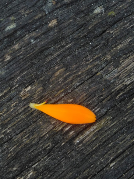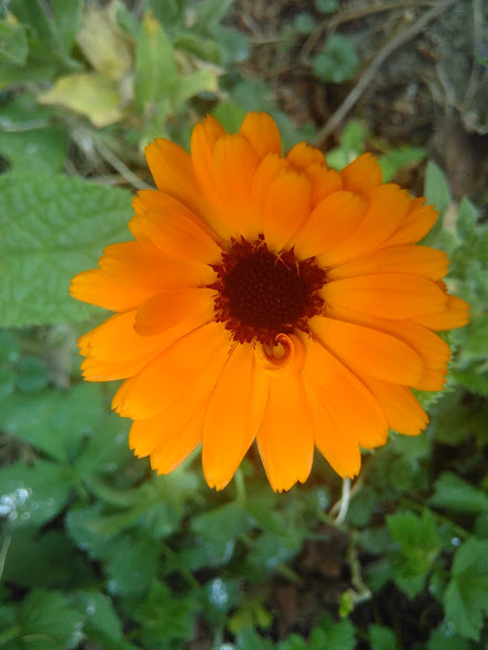 Voici un calendula (ou souci) qui s'est dévoilé pas plus tard que ce matin dans mon jardin à Bruxelles.