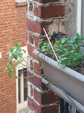 voici la menthe que j'ai planté a décidé de sortir de la jardinière pour atteindre et recevoir les rayons du soleil.