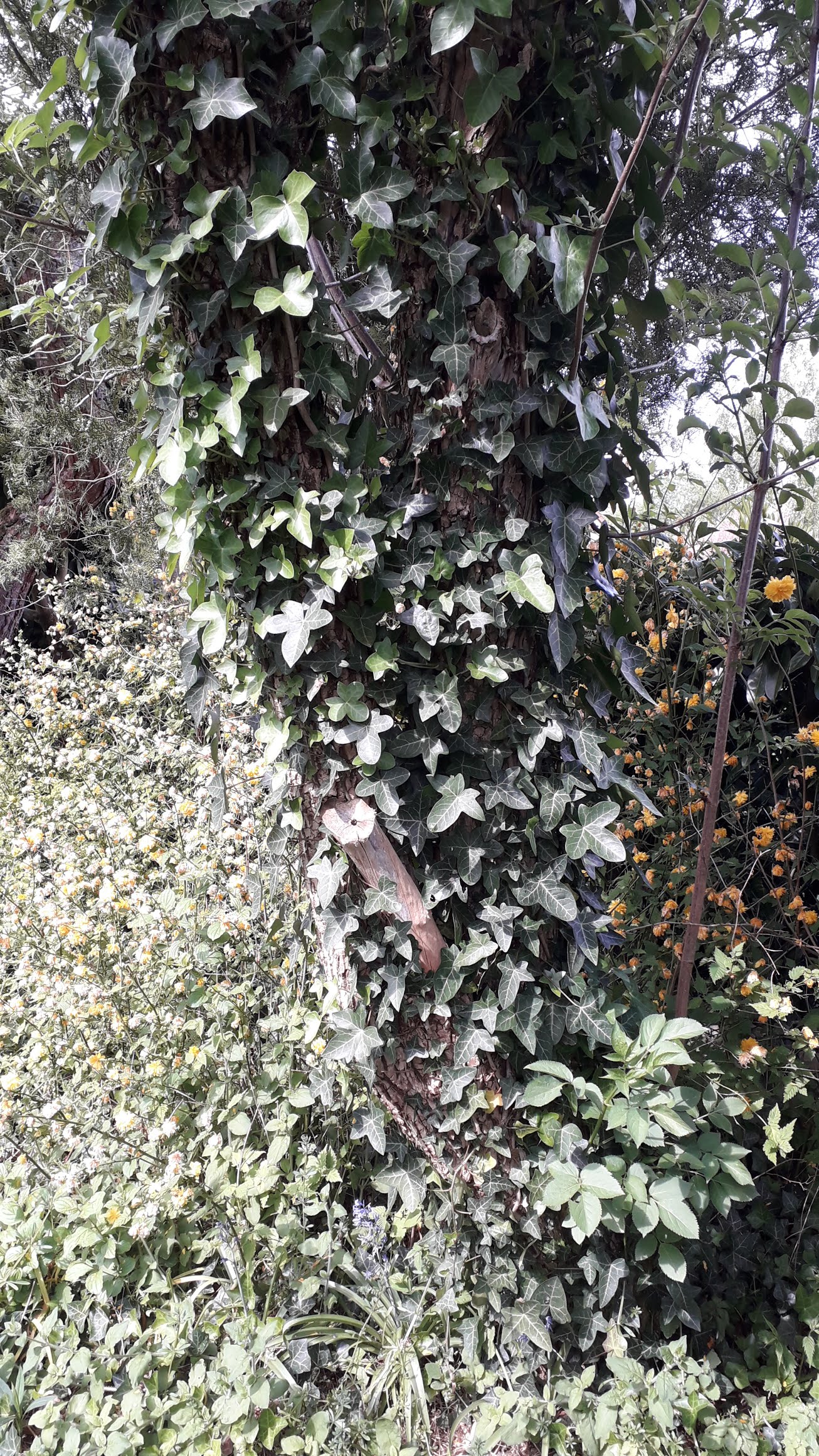 Voici la surprenante résilience d'un saule à feuilles d'olivier ou Salix atrocinerea.probablement terrassé par une tempête il y a quelques années de cela. En voyant la photo on imagine bien la violence du choc et les dégâts causés à notre infortuné.