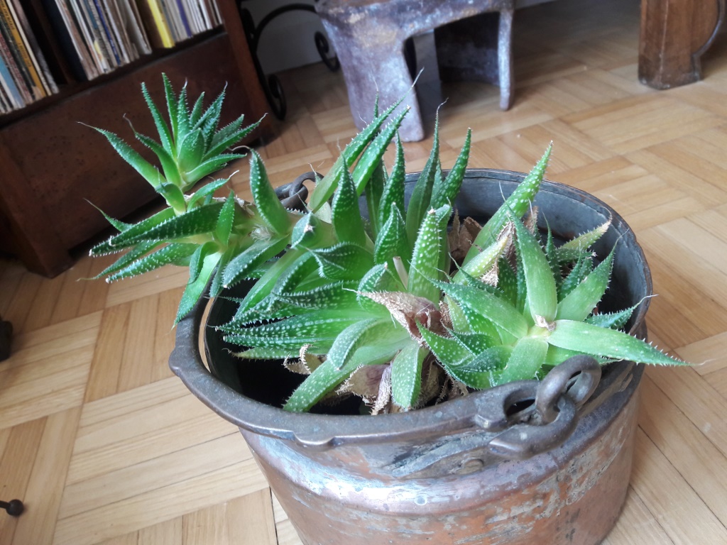 Voici une Echeveria (je crois), qui semble tenter une escapade. Je ne sais pas s'il convient de faire quelque chose pour cette plante ou s'il vaux mieux la laisser tranquille, si vous avez une idée sur la question, je suis preneuse.