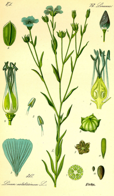 Le lin (Linum usitatissimum) est utilisé pour la fibre fabriquée à partir de sa tige.