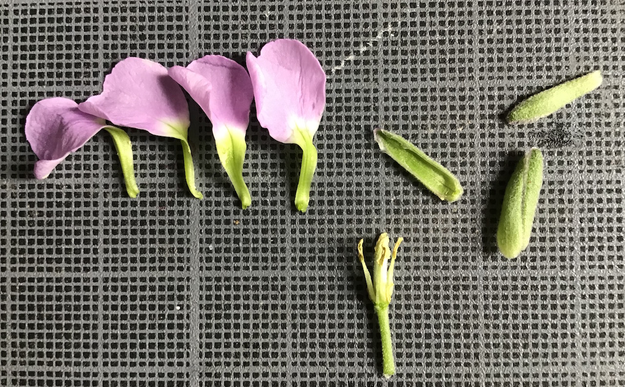 Je suis redescendue au jardin, mais je n'ai pas réussi à retrouver un autre exemplaire de cette fleur, j'ai mis en photo ce qu'il reste des multiples dissections