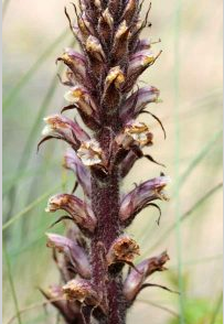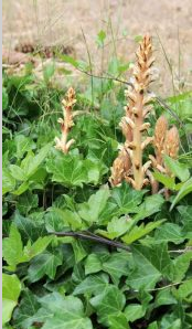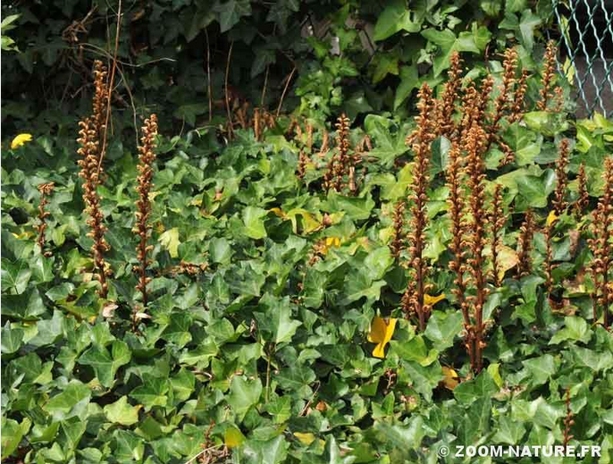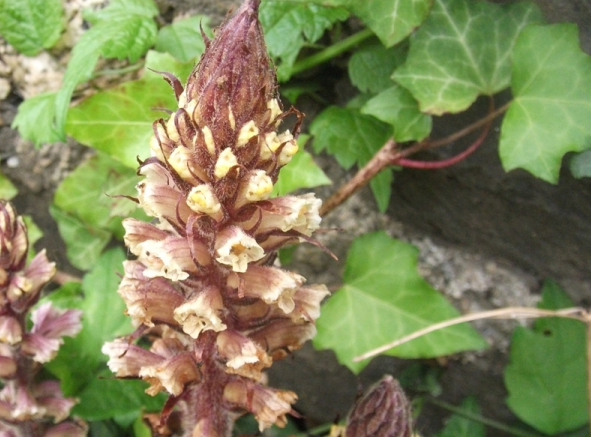 J’ai retenu l’exemple des Orobanches, plus particulièrement l’Orobanche du Lierre: Orobanche hederae, famille des Orobanchaceae. «Le vrai parasite d’un faux parasite » suivant Zoom nature.fr. Car l’Orobanche du Lierre, comme son nom l’indique, ne parasite que le lierre ou les aralies (même famille des Orobanchaceaes).