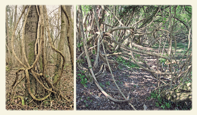 Hier en allant me promener dans les sous bois, il y avait beaucoup de lianes. Je ne sais pas exactement de quelle plante il s'agit, j'y retournerai quand elles auront des feuilles et fleurs. Mais en faisant quelques recherches je me demande s'il ne s'agit pas de Clématite vigne blanche (Clematis vitalba), de la famille des Ranunculaceae. Voici une photo trouvée sur internet qui ressemble beaucoup à ce que j'ai vu.
