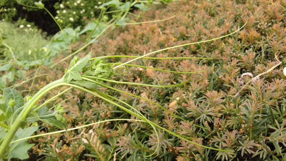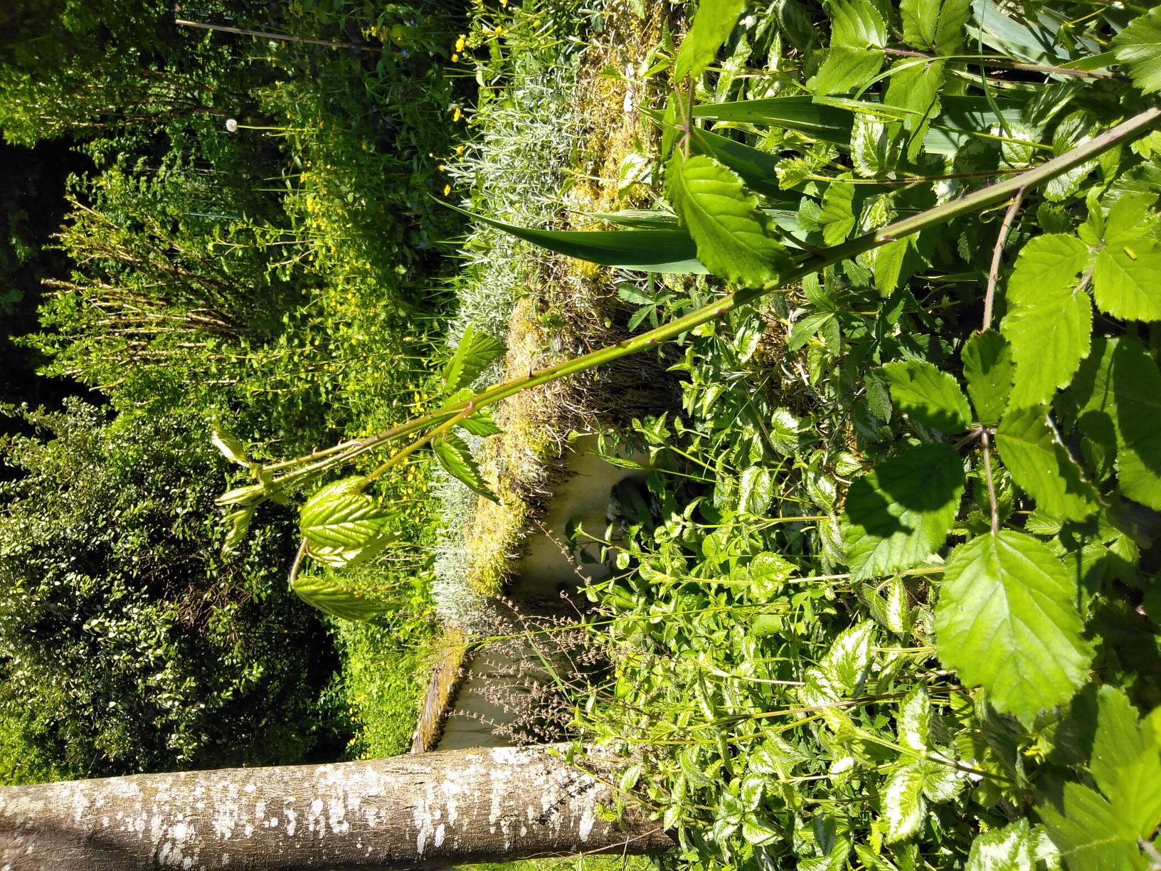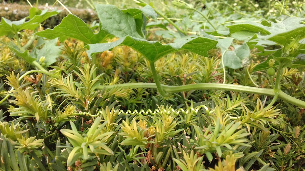 Une ronce s'est installée dans mon jardin. Sur le site de permaforêt, est expliqué comment jardiner avec les ronces. Les ronces tressées en alcove, peuvent constituer un milieu idéal pour la croissance de plantes grimpantes tel le concombre. Dans la nature les ronces est une pouponnières pour de jeunes arbres frênes, chênes, merisier, bouleau. Elles les protègent pendant leur jeune âge des herbivores et de conditions climatiques extrêmes.