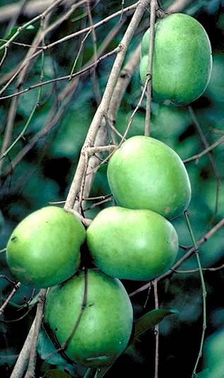 Les fruits sont des baies globuleuses ou ovoïdes composés de nombreux carpelles soudés, aréolés , légèrement tuberculés et tomentelleux-ferrugineux à glabrescent, de couleur jaune orange à mâturité. Ces fruits de 2,5-10 cm de long arrivent à maturité en septembre octobre ; ils renferment de très nombreuses graines (environ 10 000 par kilogramme).