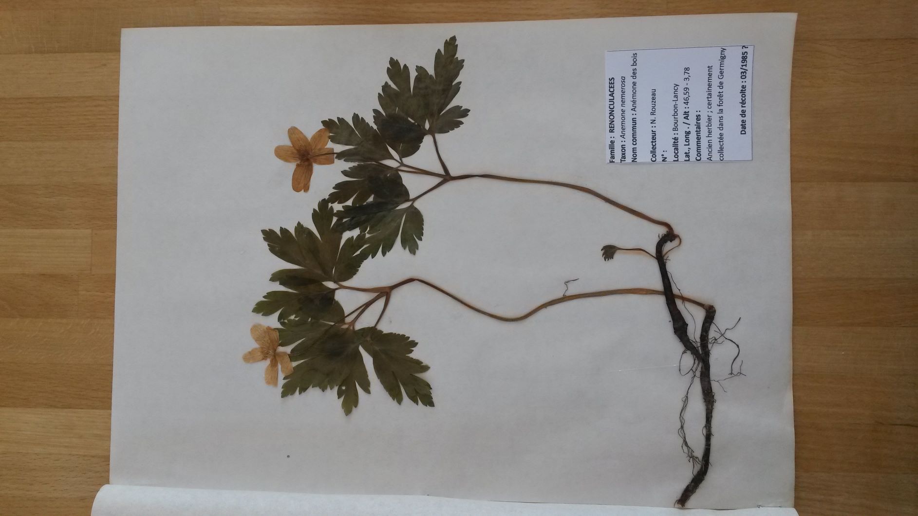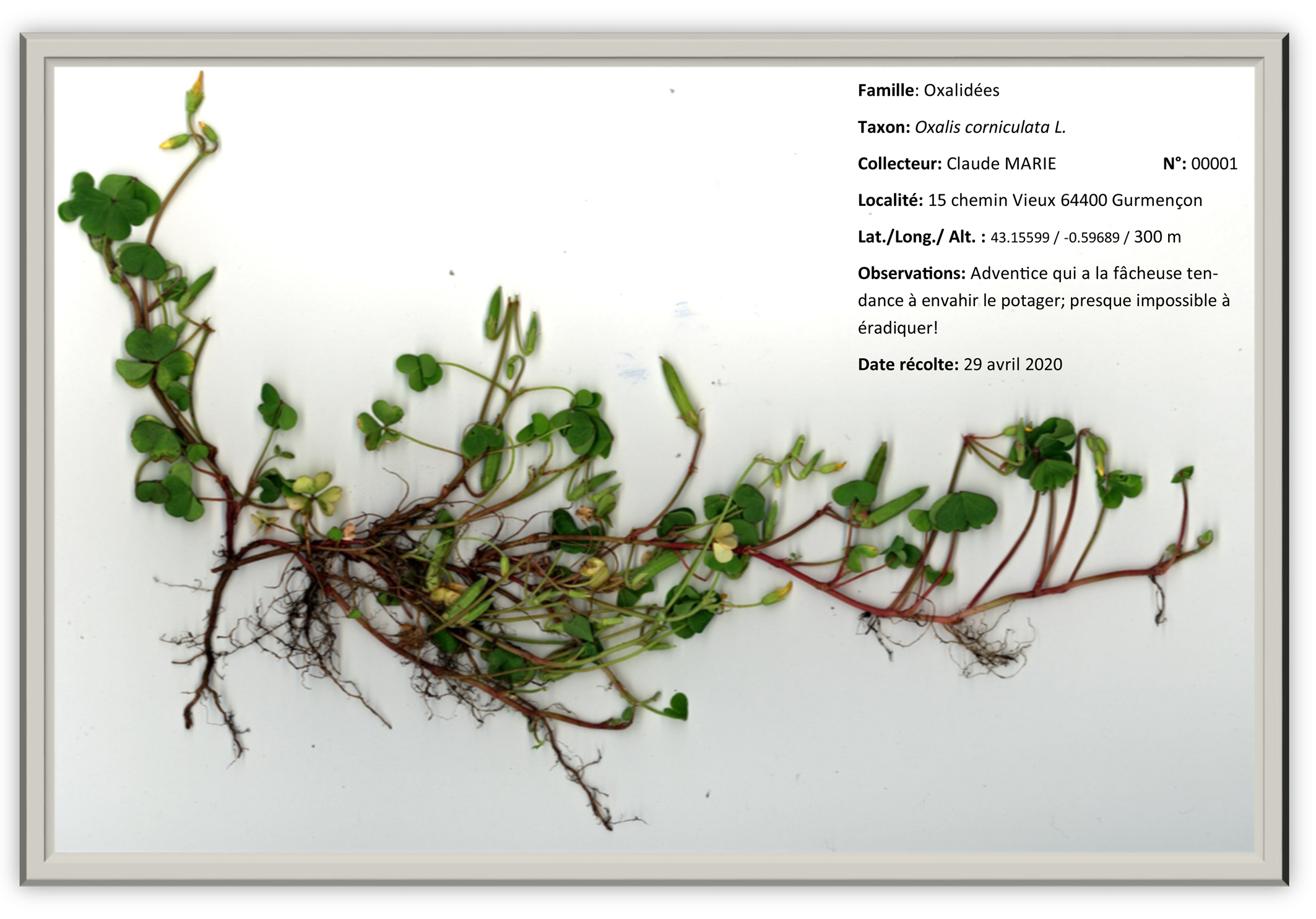 Prise de photo effectuée dans la nature, étiquetage manuel et photo finale de l'herbier.