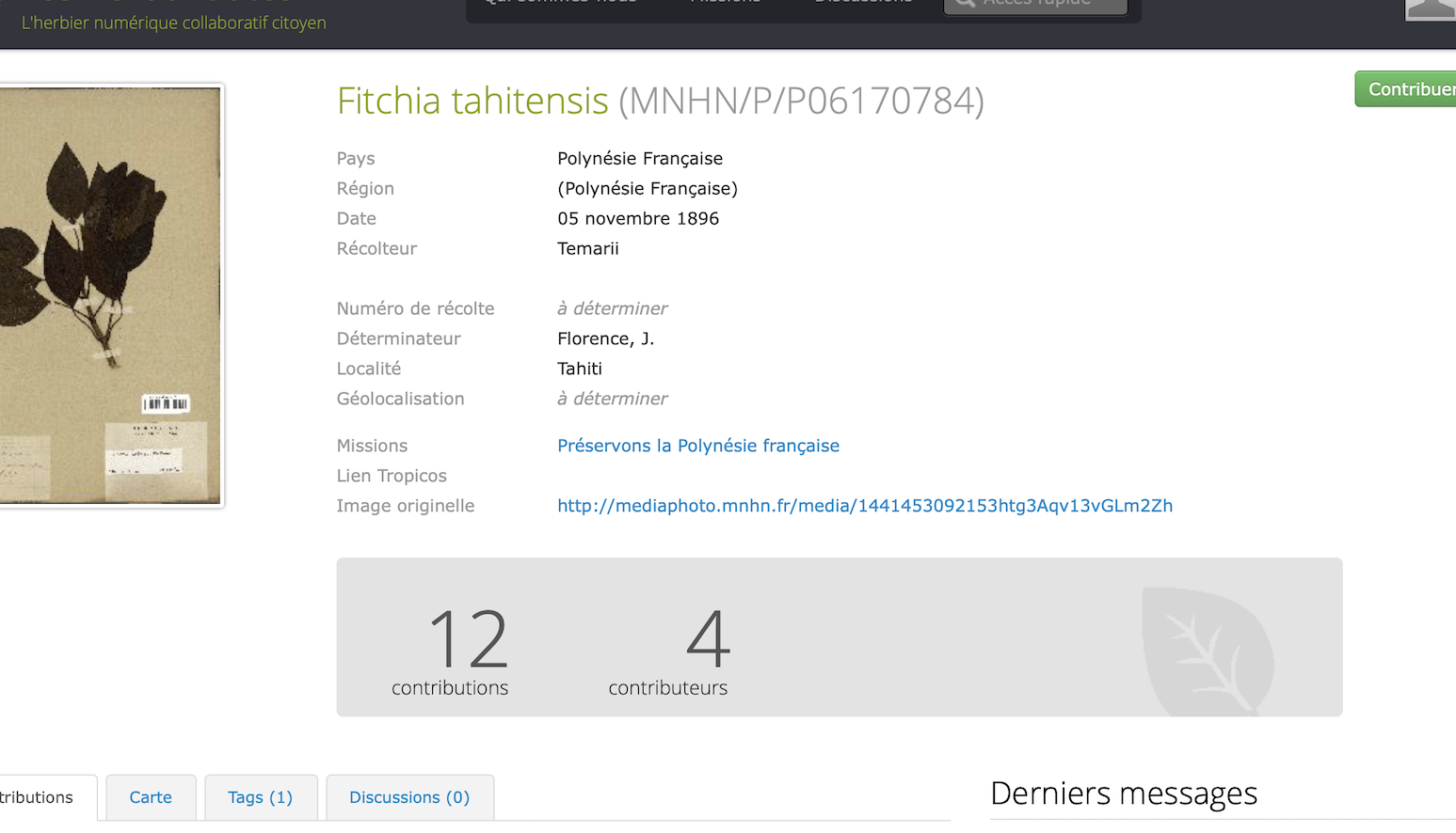 J'ai participé aux Herbonautes, l'herbier numérique collaboratif, et plus spécifiquement à la mission "Préservons la Polynésie Française".