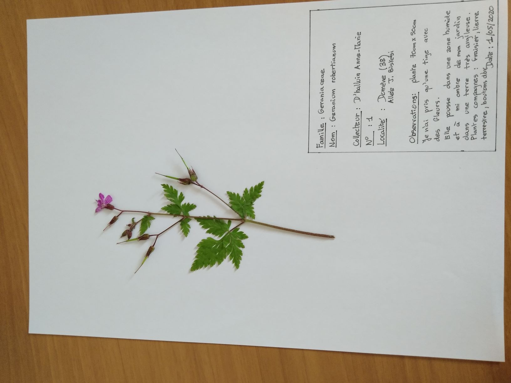J'ai choisi de faire la 2e activité car nous sommes bientôt le 7 mai et c'est un peu court pour sécher une plante et l'étiqueter d'ici là.