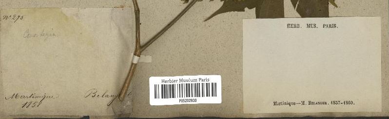 Plante originaire des Caraïbes notamment de la Martinique, découverte par Charles Plumiers (dont l'écriture Plum en bas à gauche en dessous du nom de la plante
